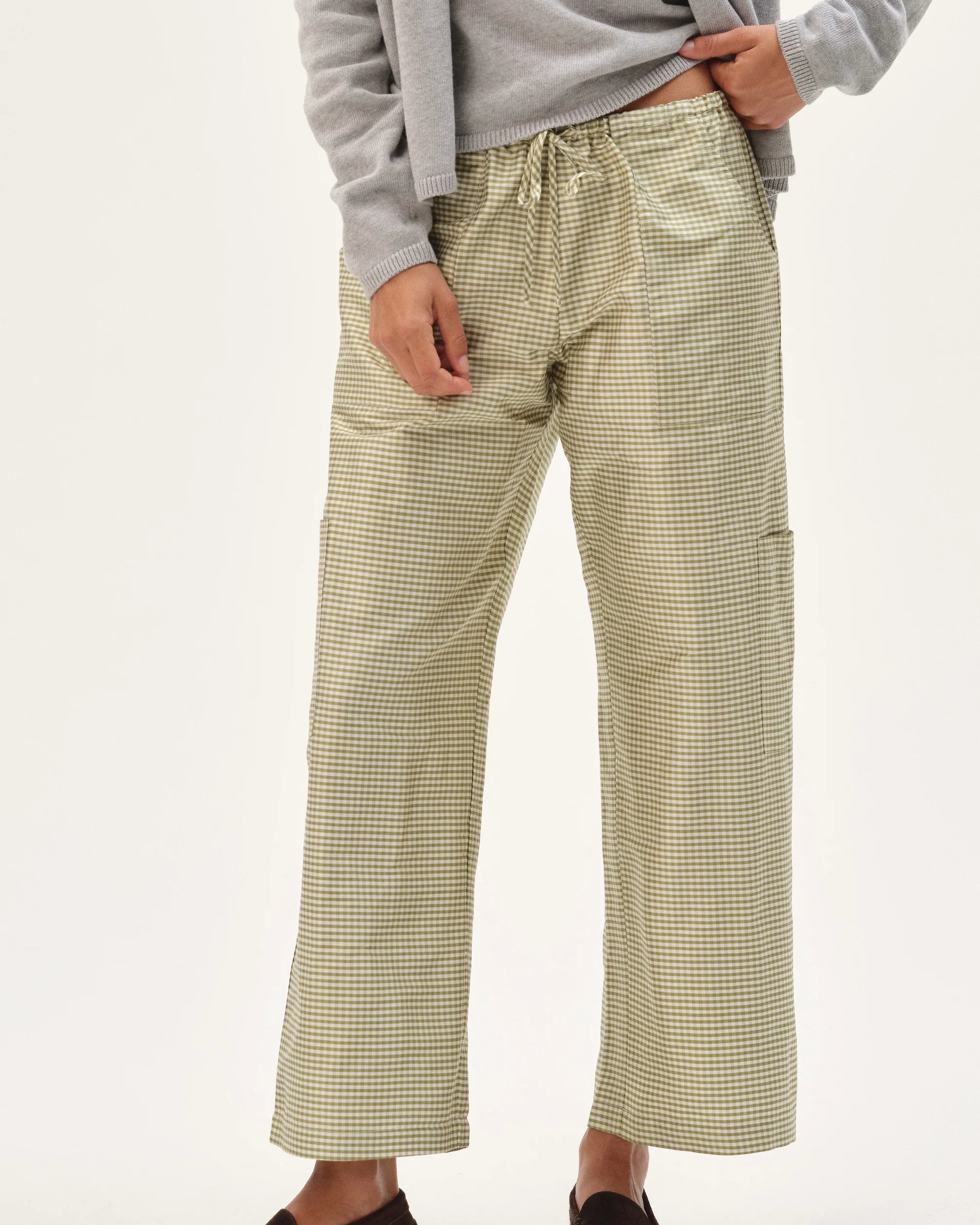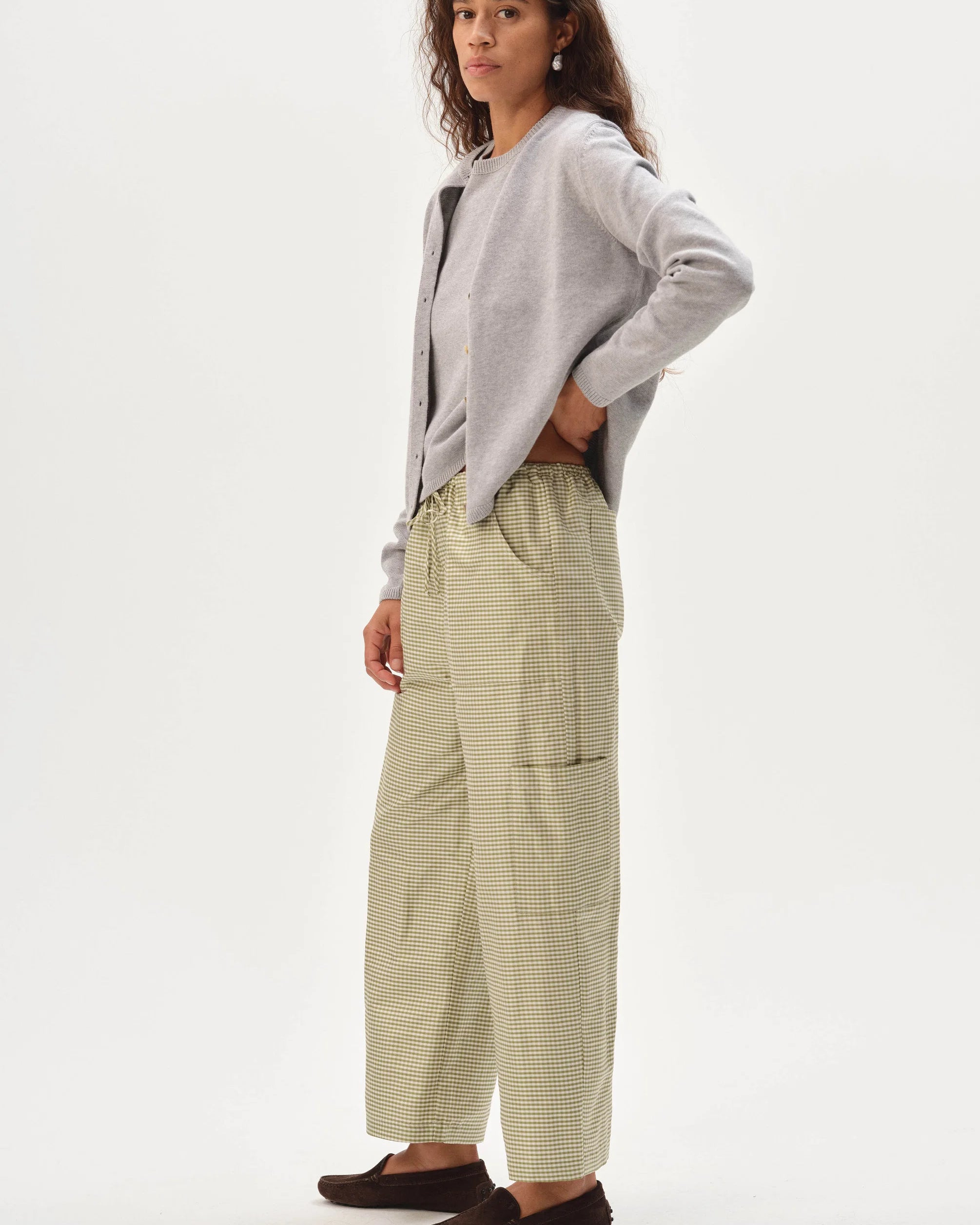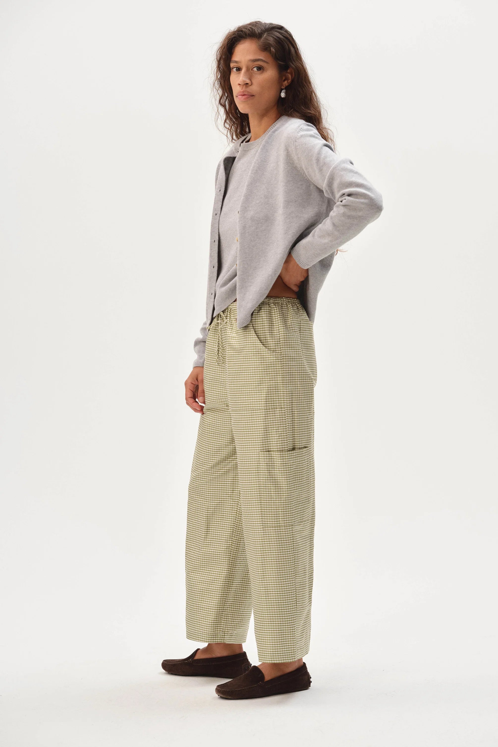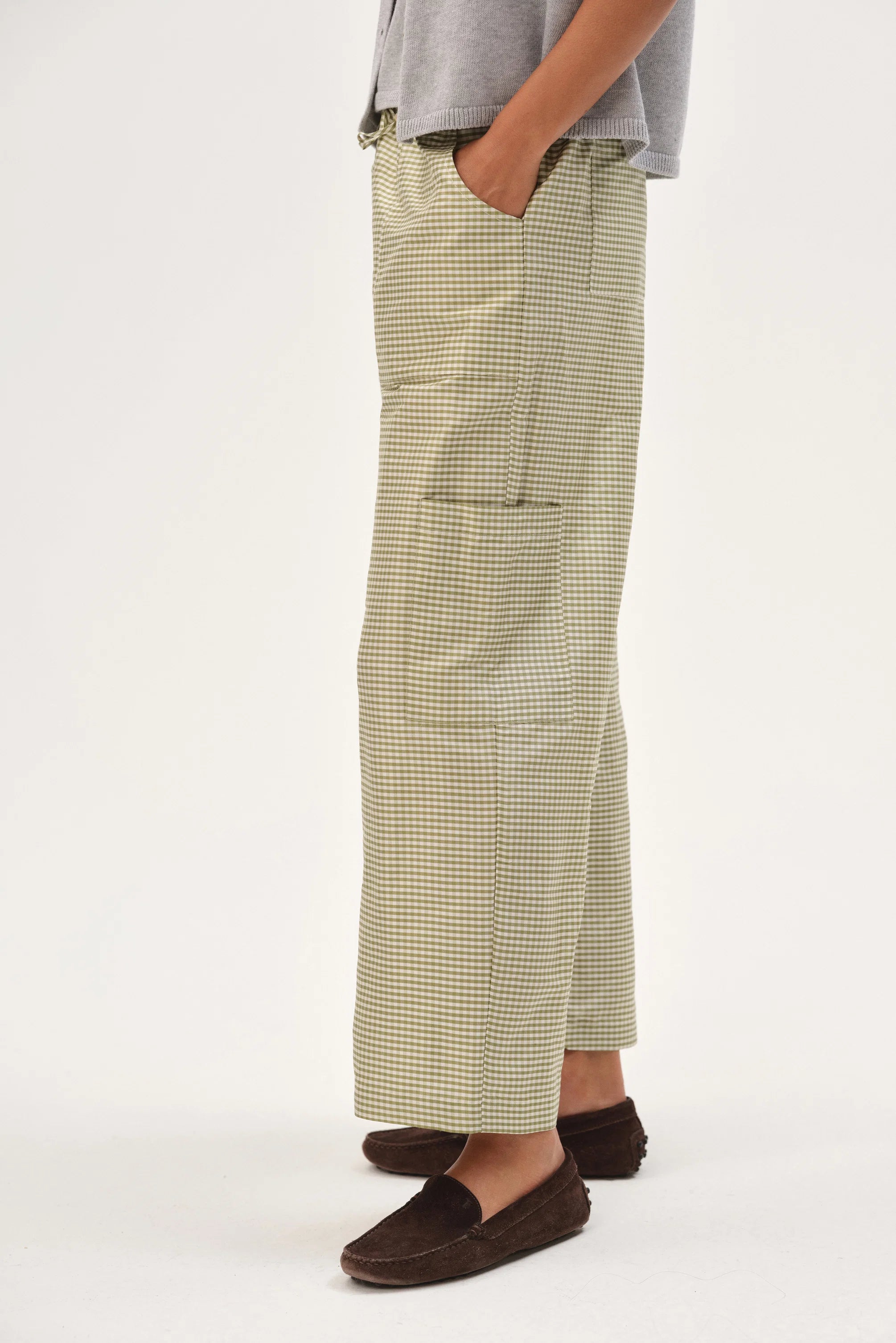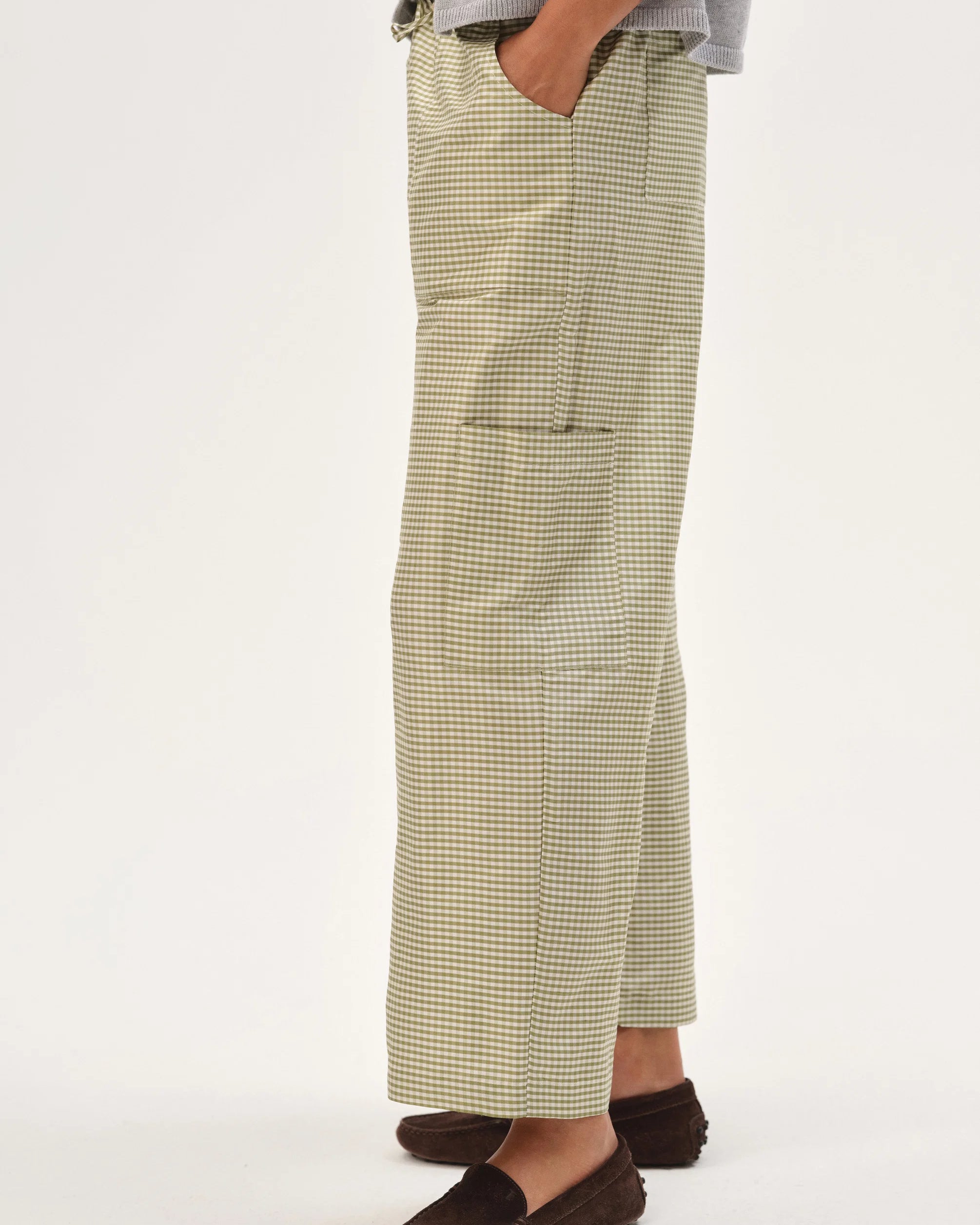 Taffeta Gingham Drawstring Cargo Pant in Pistachio