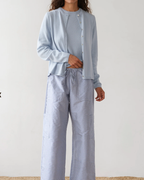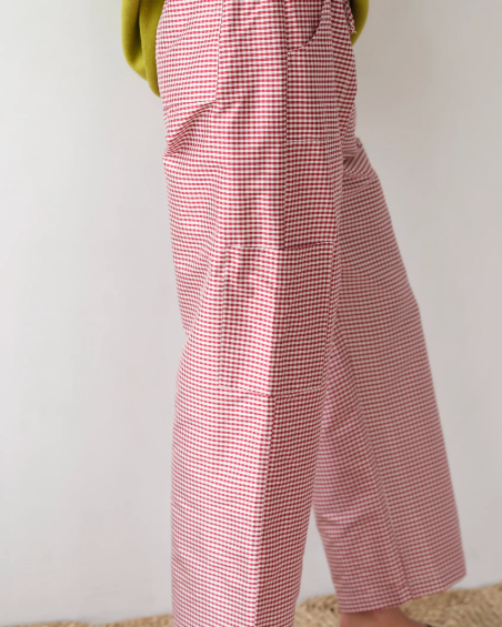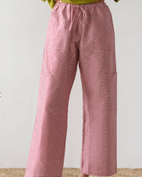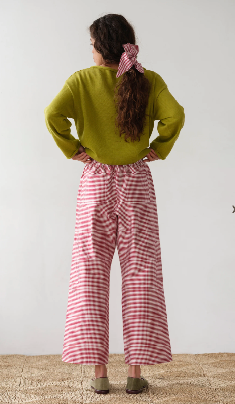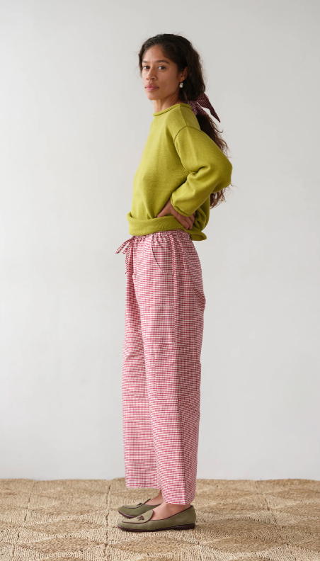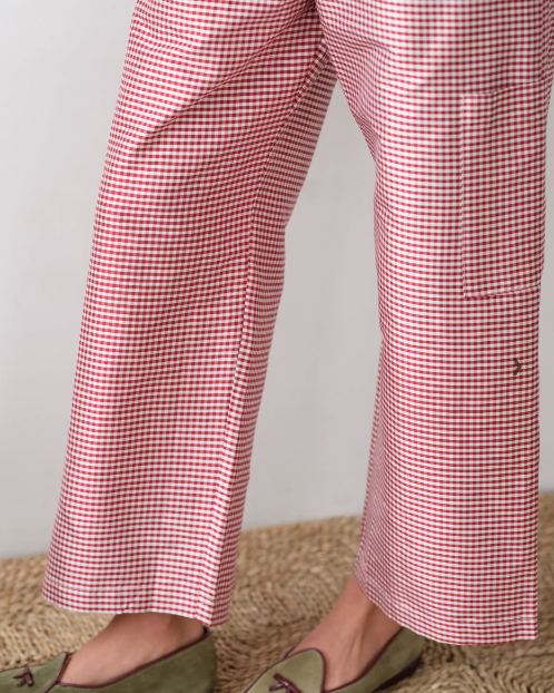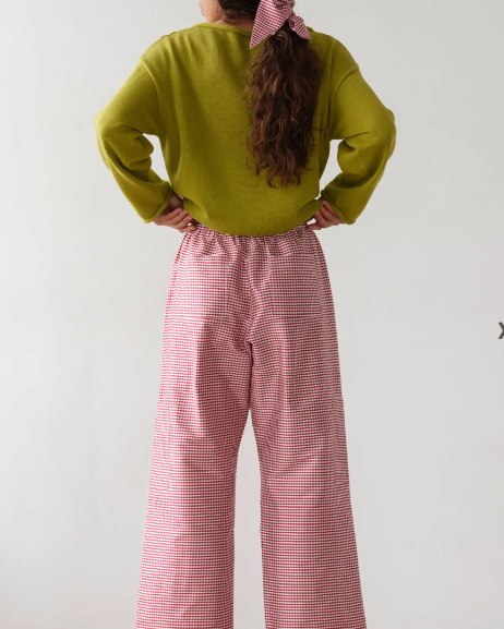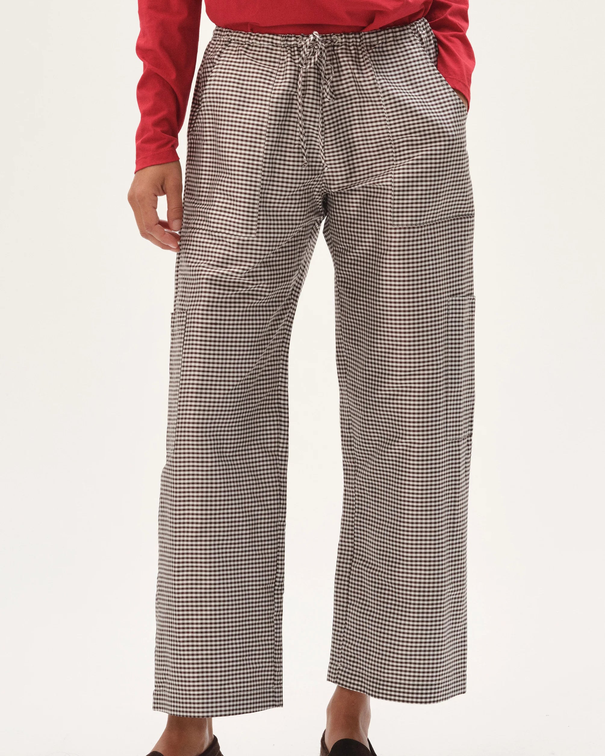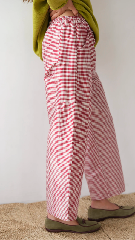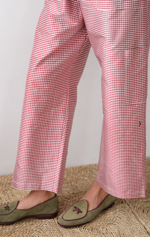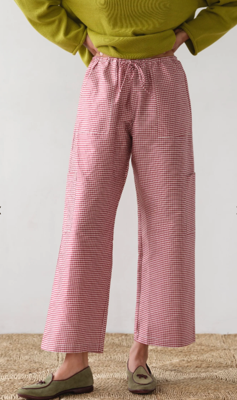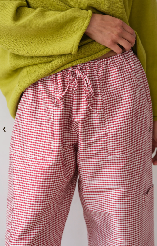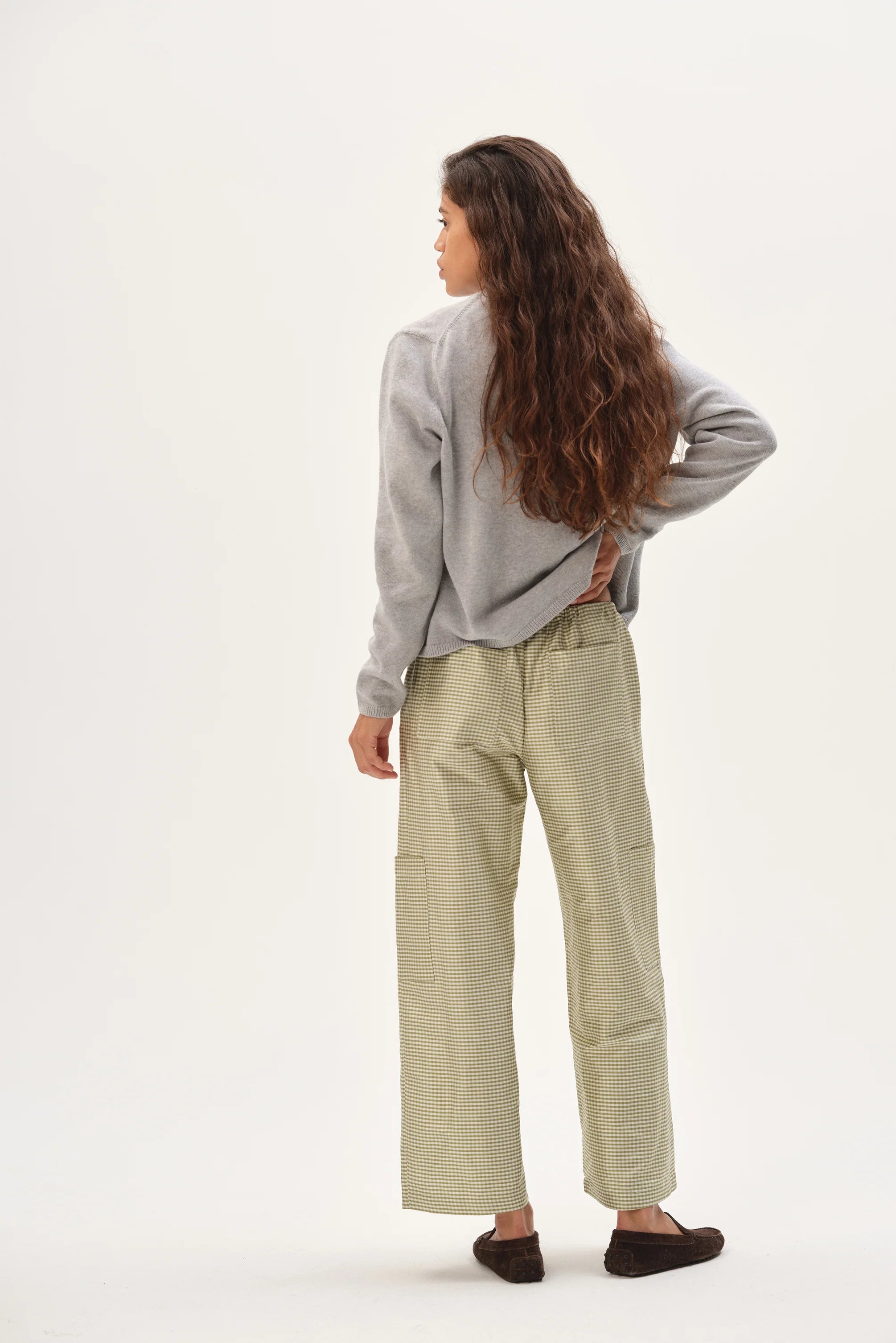 Taffeta Gingham Drawstring Cargo Pant in Pistachio