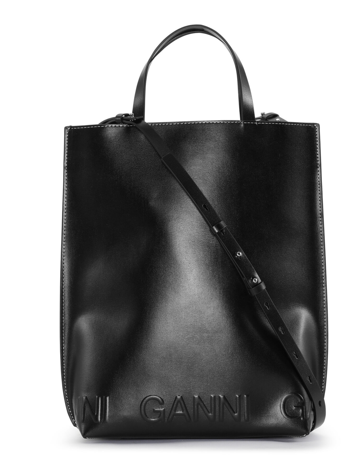 The Medium Tote Bag is made from a blend of recycled leather, featuring GANNI logo and a detachable and adjustable strap.