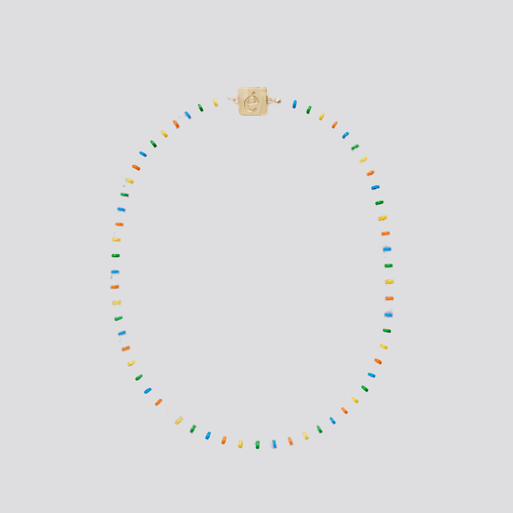 The Dale necklace is a beautiful and classic piece from éliou. It features crystal quartz and multicolor enamel beads, brought together by a heavily gold-plated and sturdy logo magnet clasp. The necklace is 16" long and can be worn alone or stacked with other éliou pieces.