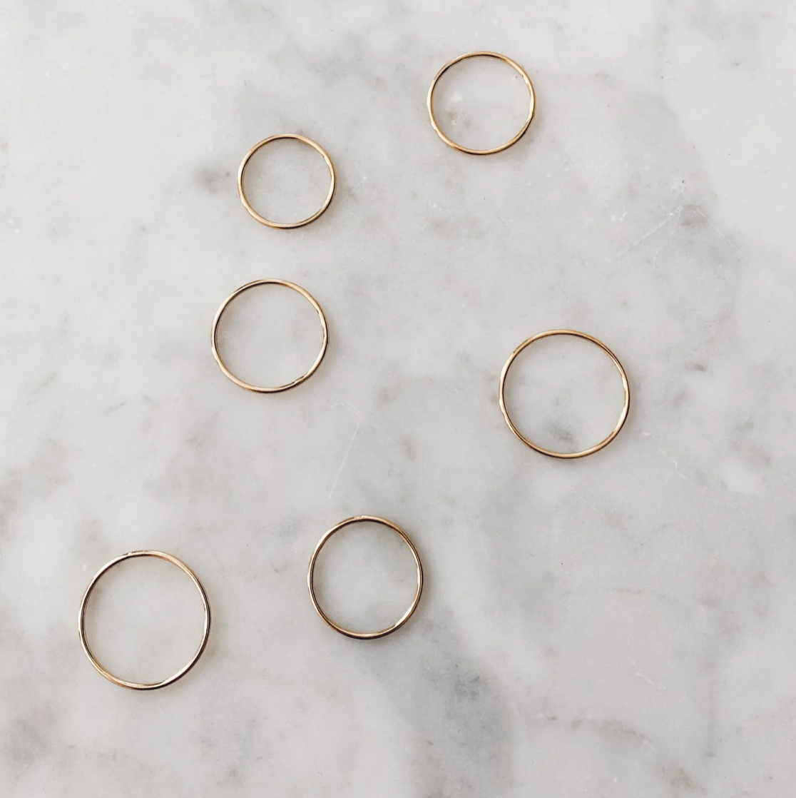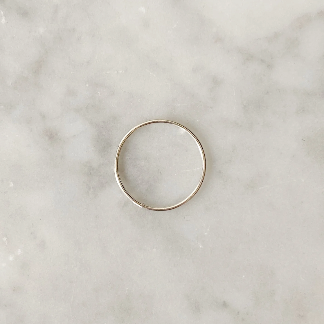 Putting a refreshing twist on a popular concept, the 'Janey' is the extra skinny, mini plain band and the little sister of our 'Jane' design. Made with 14K Gold Filled or Sterling Silver, this ring is essential in successfully completing the stacking trend.