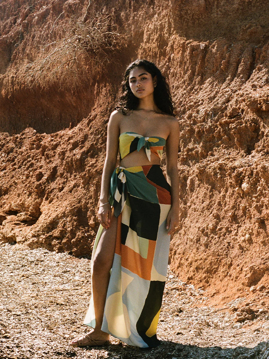A perfect square of lightweight organic cotton. Our scarf can be tied as headwear, hung as art, styled as a top or tied as an accessory. The ultimate versatile piece to compliment your Soleil Soleil look.