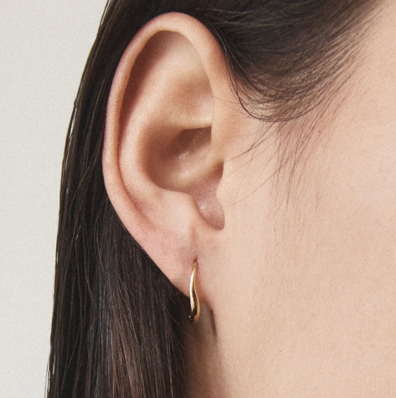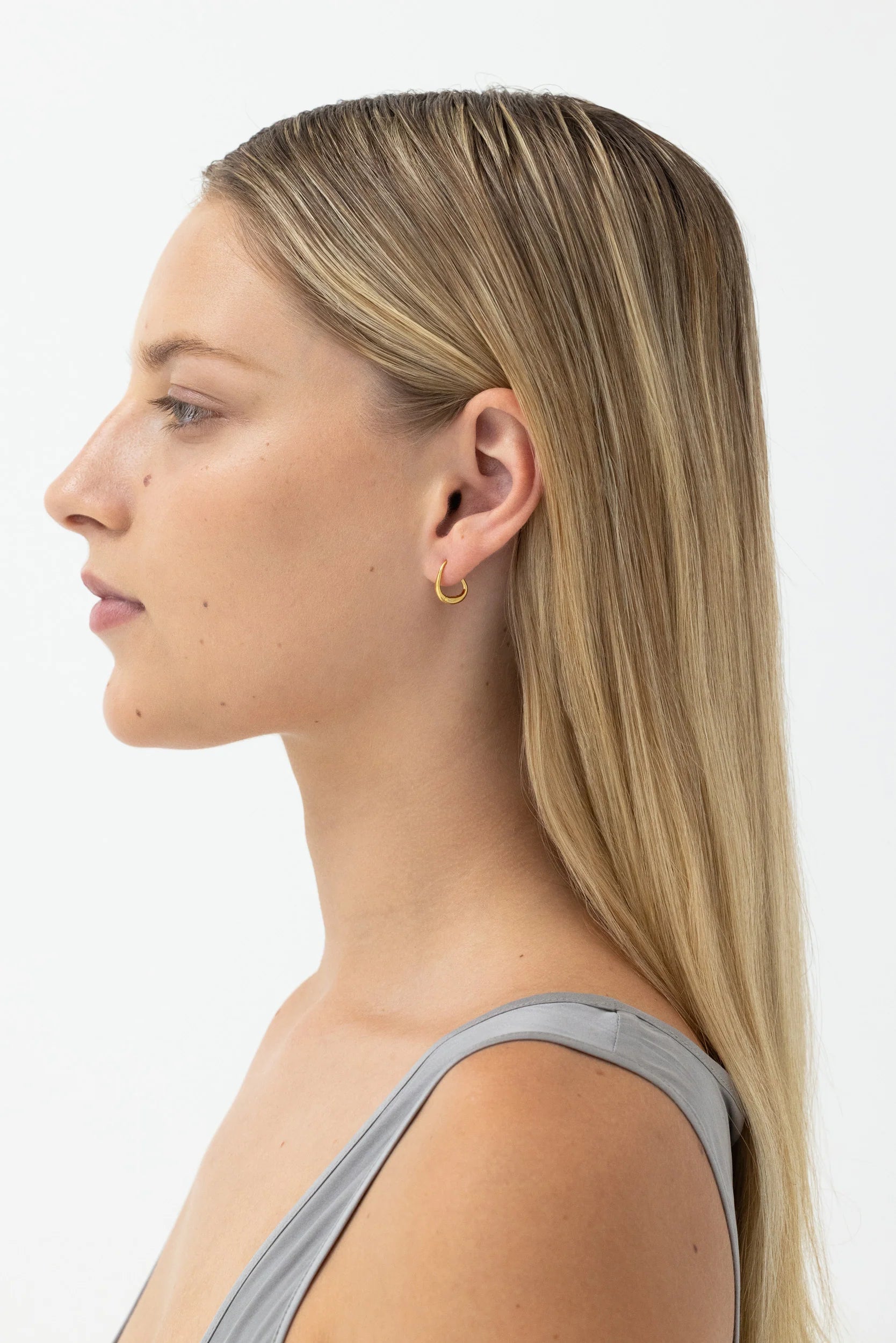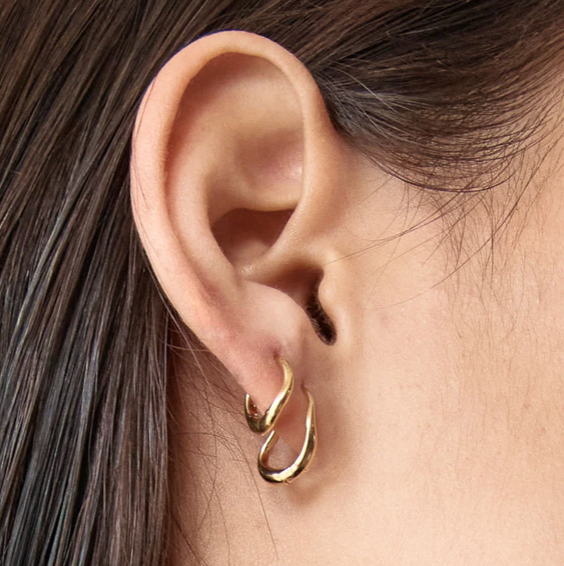 Smooth curves and an irregular shape create an effortlessly cool, easy-wearing style. Designed with a soft-closure clasp​the Ventee Hoops are designed to be a staple piece in your collection. Pictured with the Momento Baby Hoops.