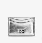 This Silver Metallic GANNI Bou Card Holder features multiple card compartments and a GANNI Butterfly hardware logo.