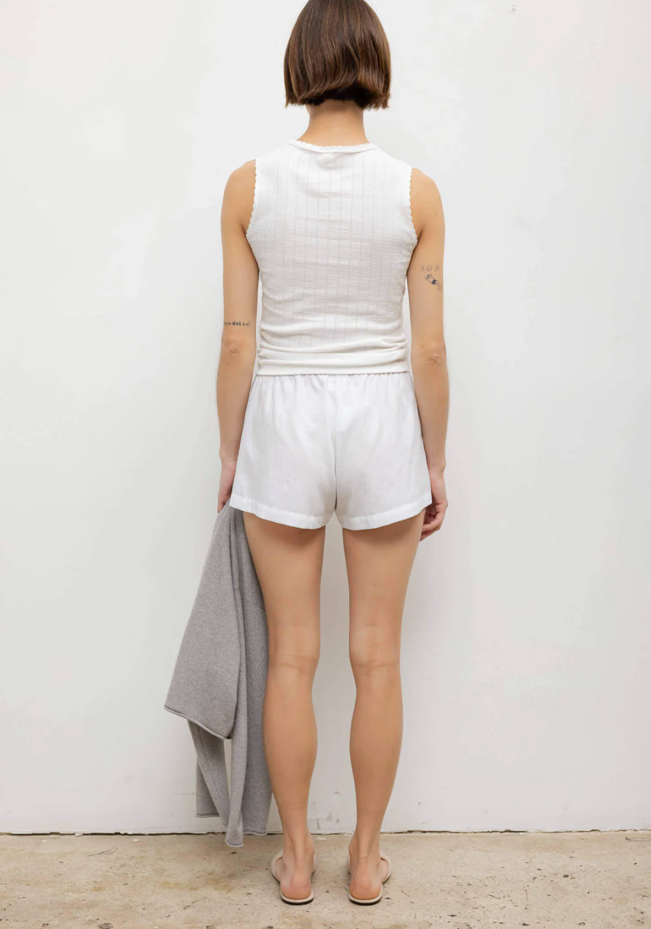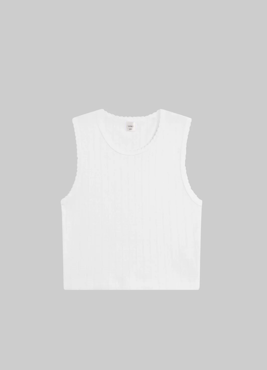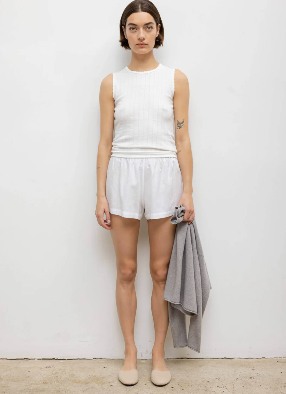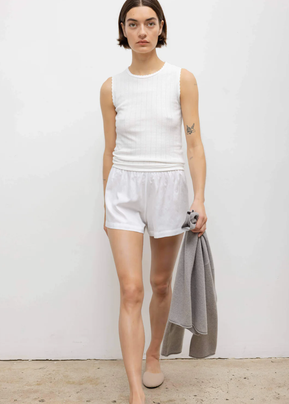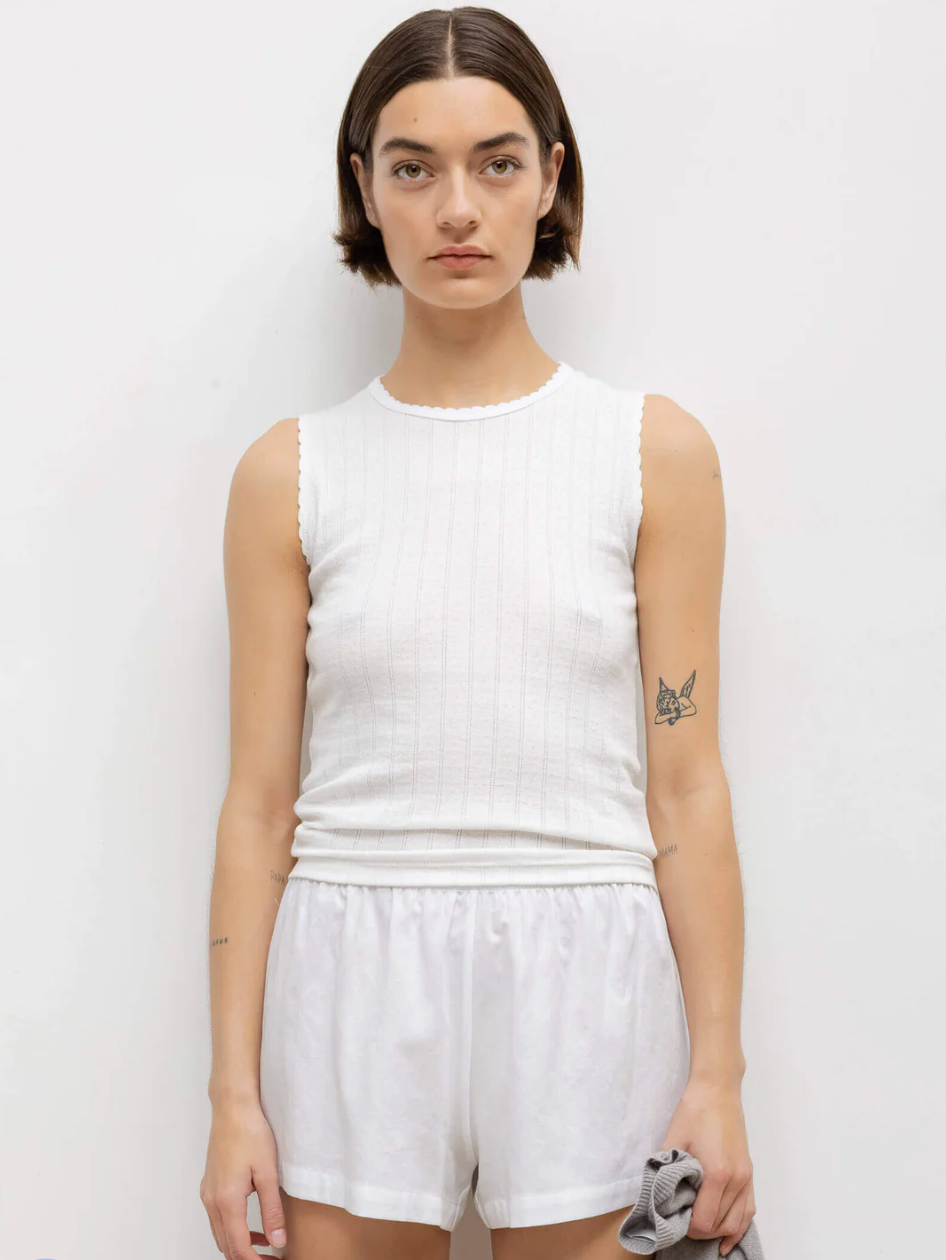Pointelle Sleeveless Crew White