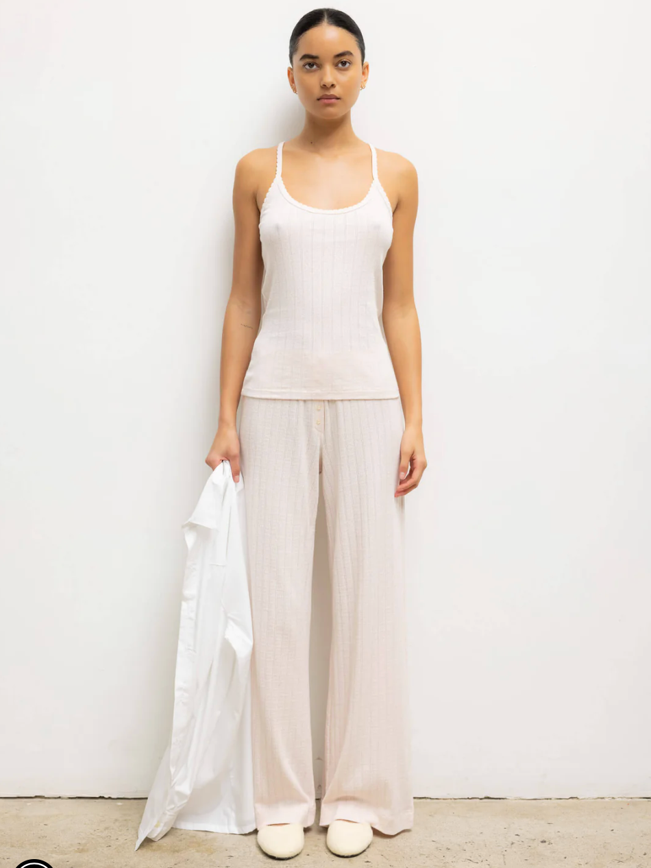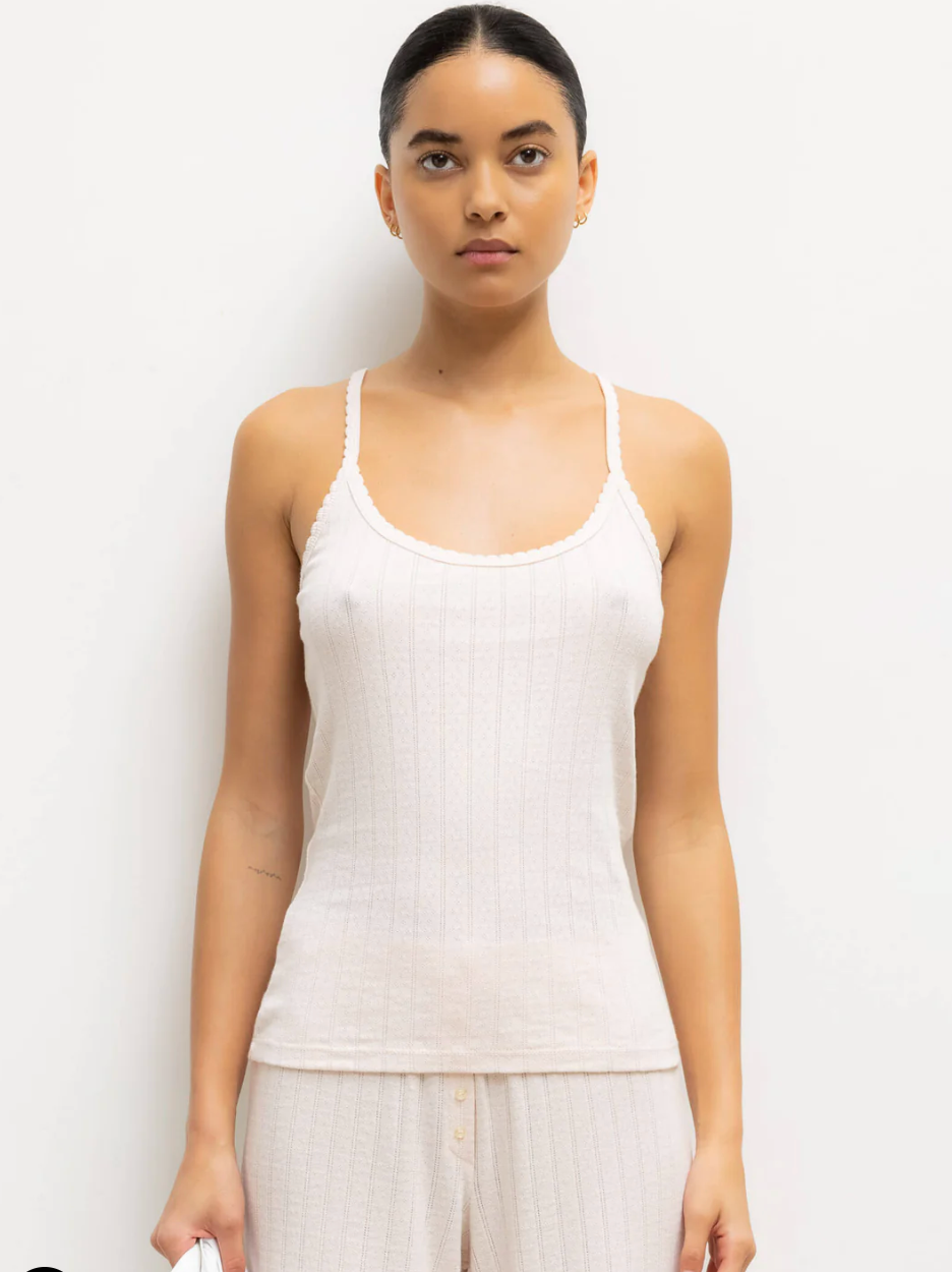 Pointelle Square Neck Tank Creme