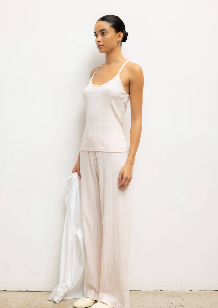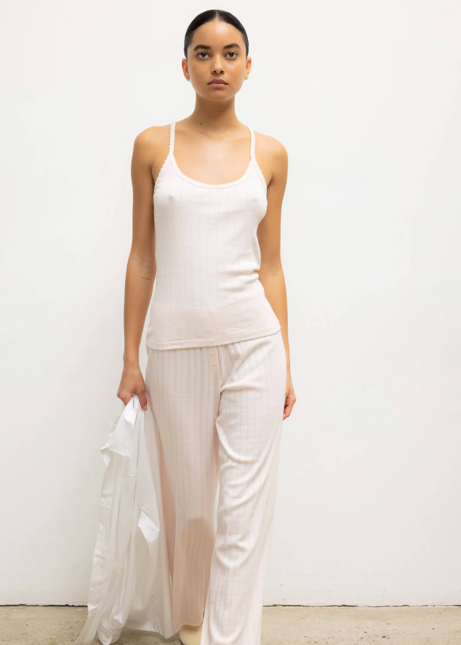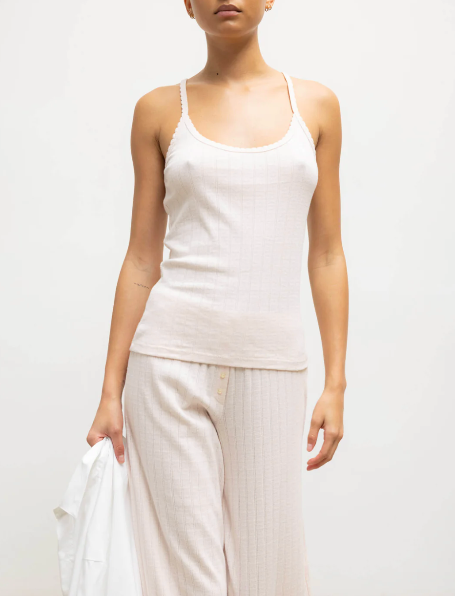 Pointelle Square Neck Tank in Powder