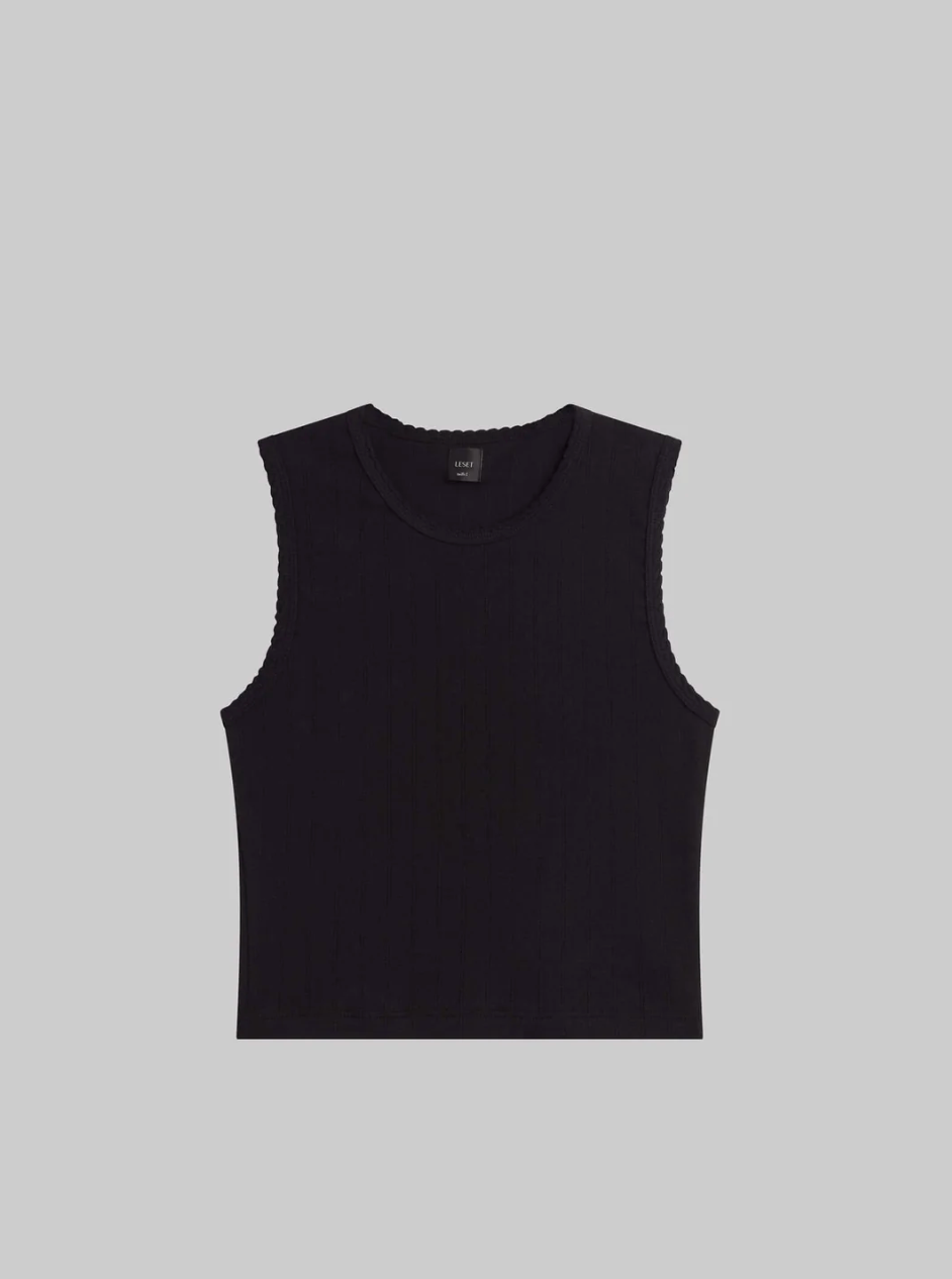 Pointelle Sleeveless Crew Black