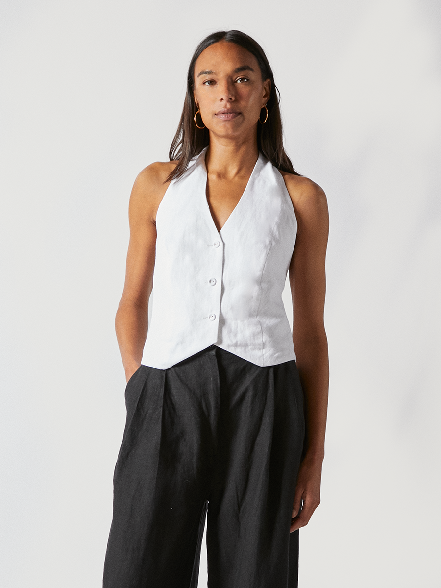 Abi Waistcoat in White Linen
