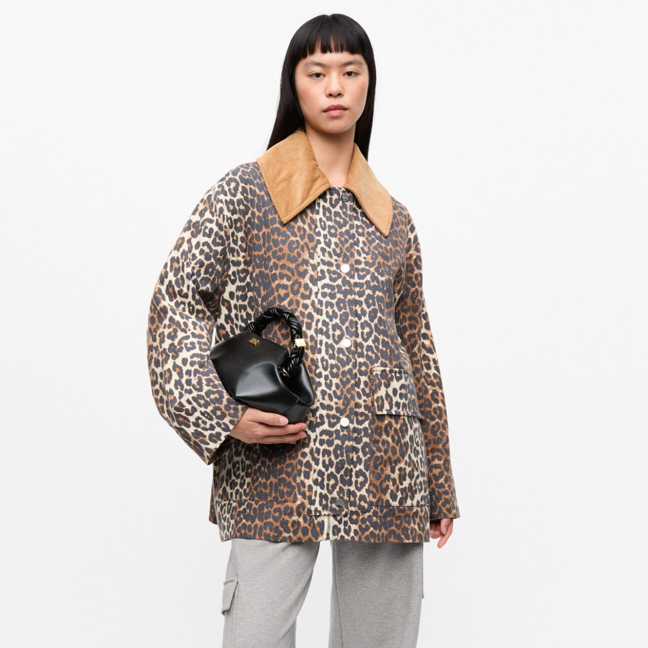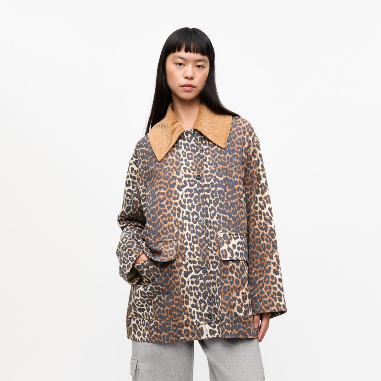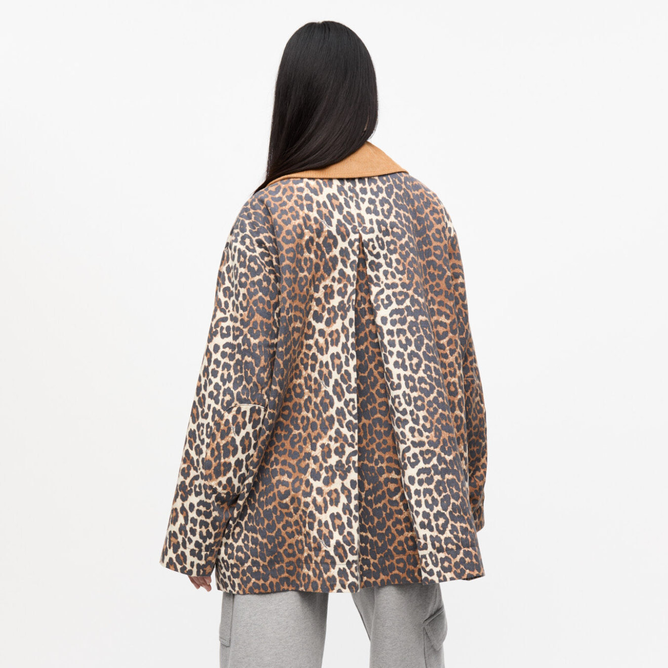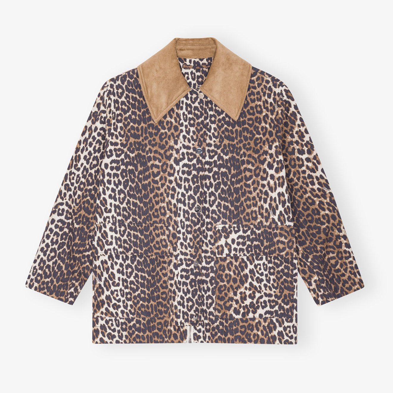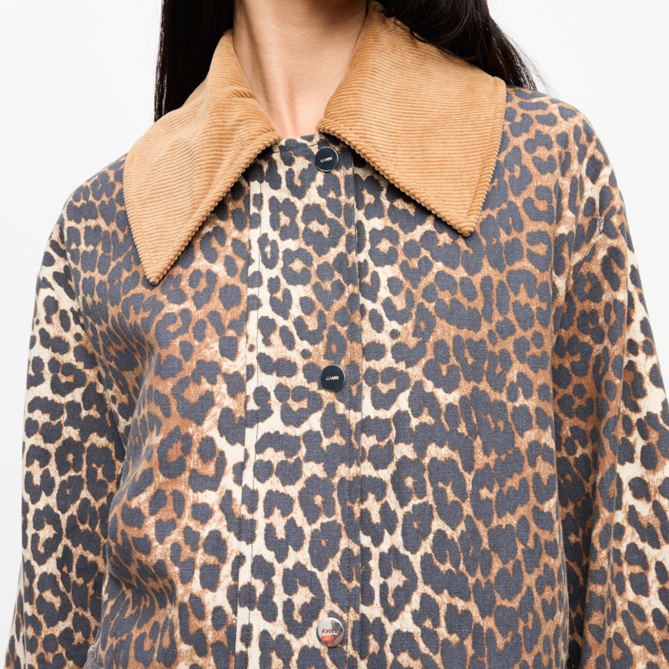 Leopard Printed Canvas Midi Jacket