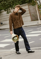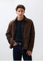 • Features: Men’s brown suede jacket made from 100% caprine leather suede for an ultra soft feel. Cut in a deep brown shade with a two way zip, internal patch pocket, and intricate stitching. This real leather jacket is a statement piece that can be styled with ease through autumn and winter.
