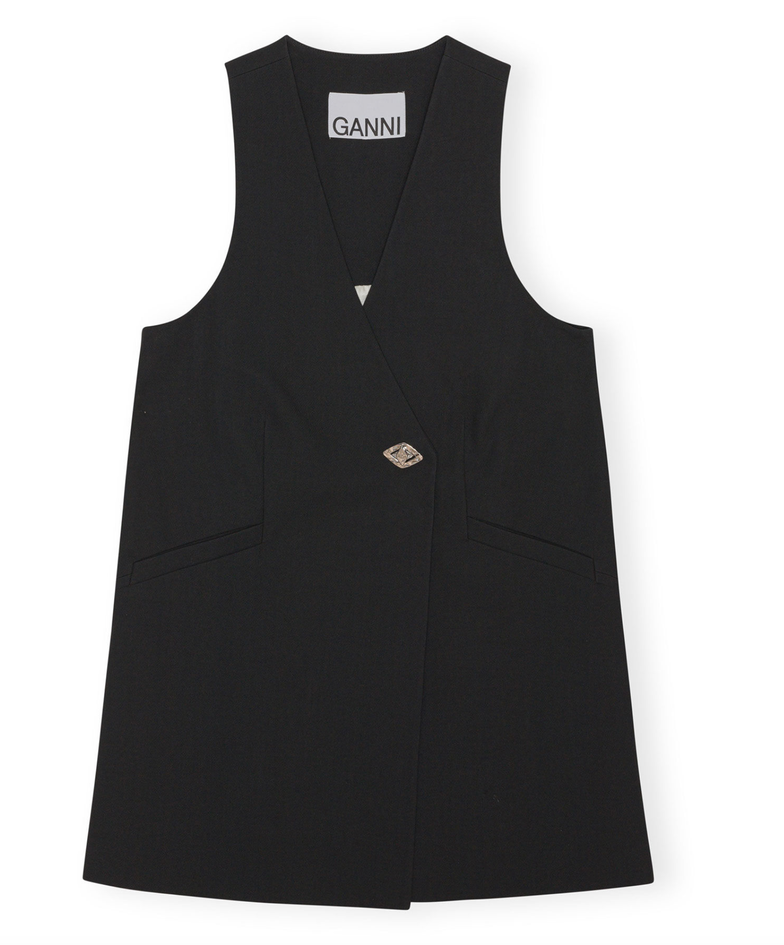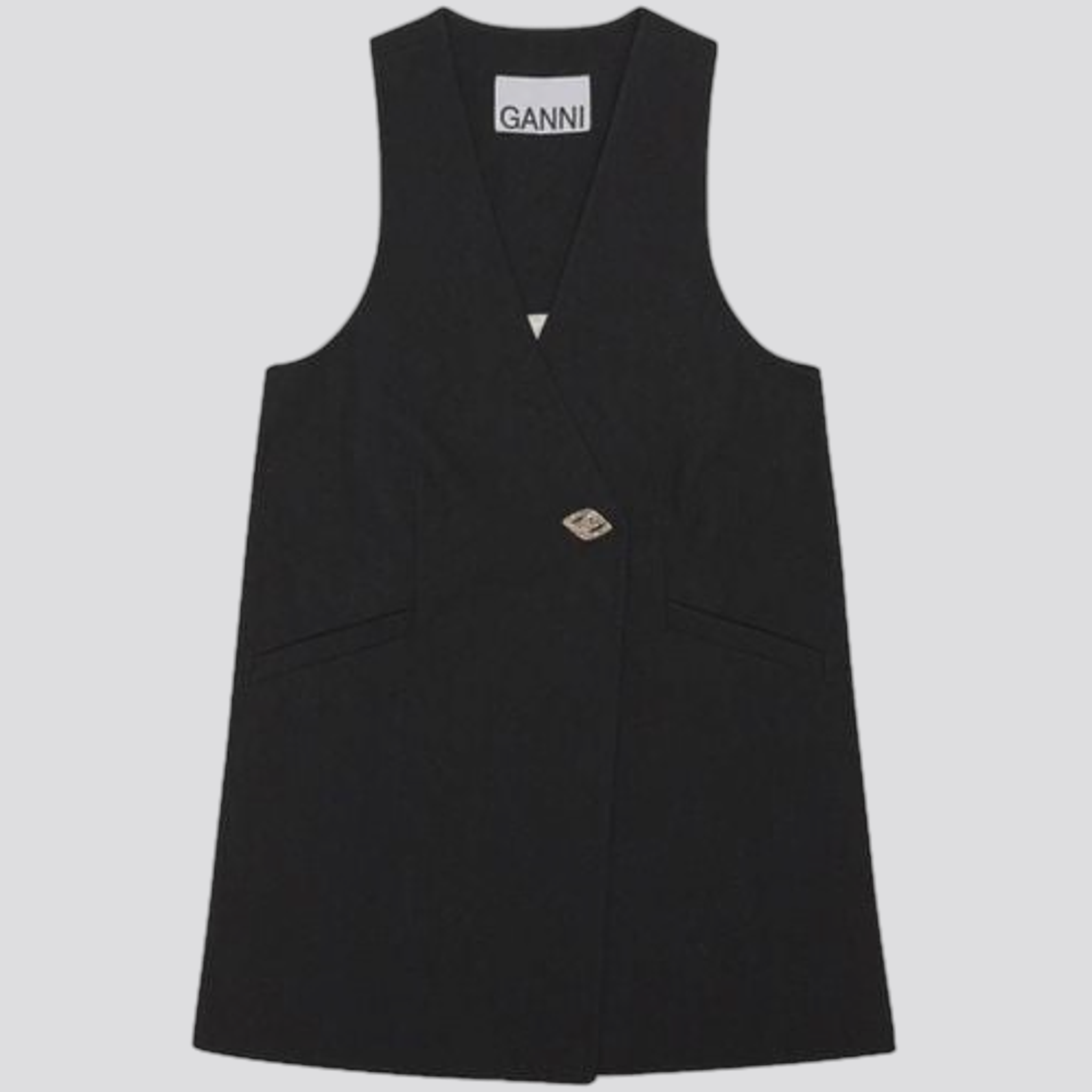 This piece is perfect for your next special event. Made from luxurious organic cotton twill, it features a V-neck, offset turn-lock closure, welt pockets, racerback, and full satin lining. Logo-engraved silver-tone hardware adds a touch of elegance.