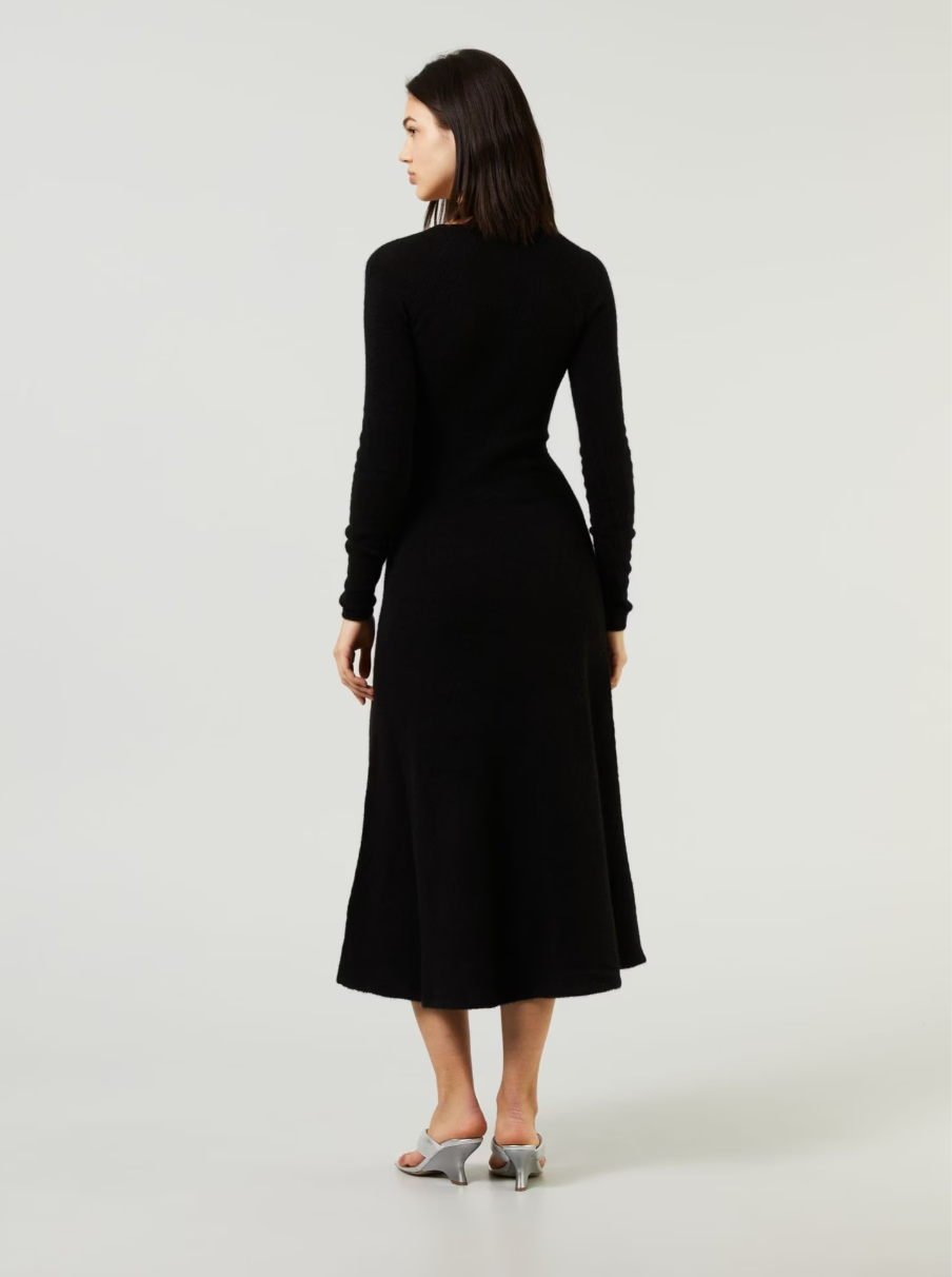 The 'Courchevel' dress is made from an alpaca/wool blend and impresses with its midi length. The bustier detail and the flared silhouette characterize this model. The flared skirt completes this look.