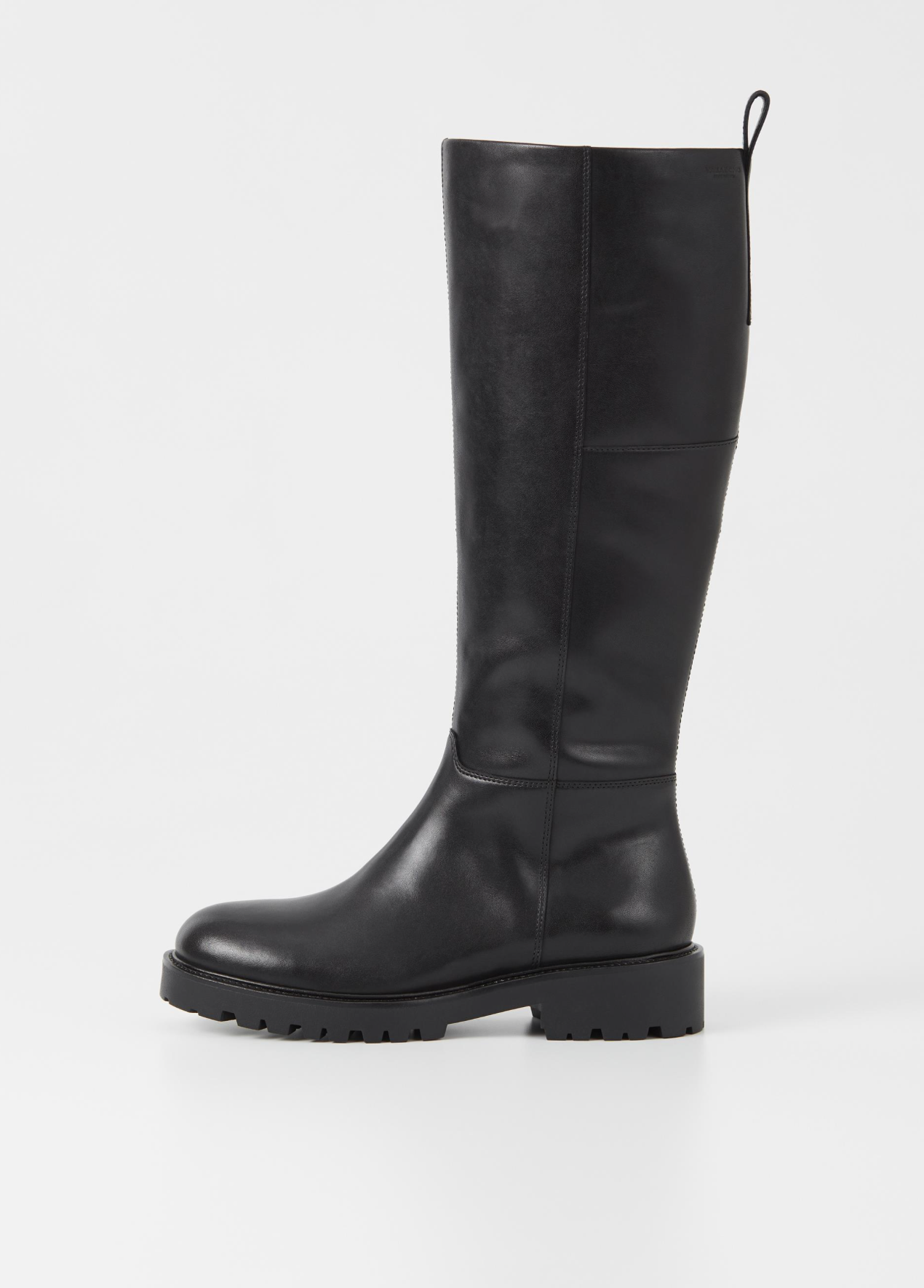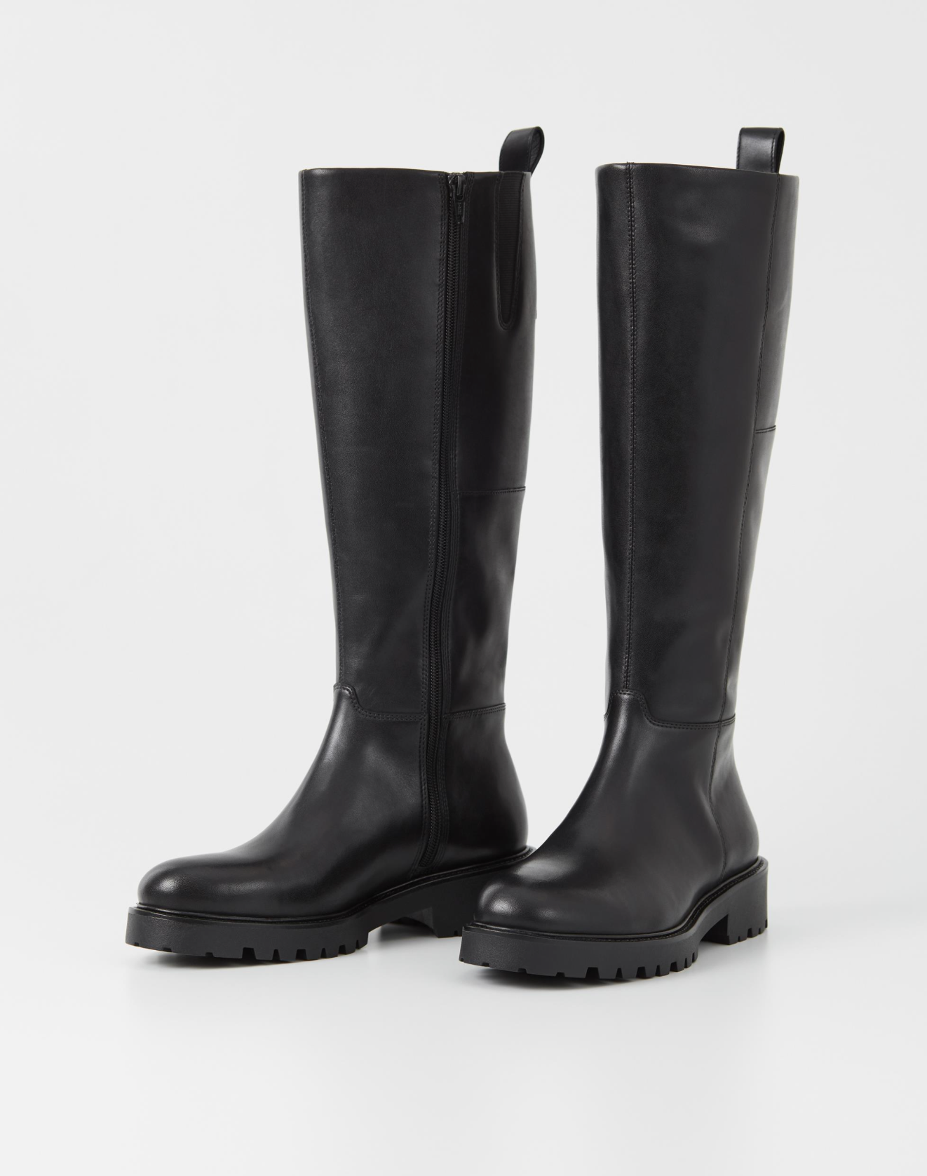 Tall boots Kenova brings a refined look to this season's chunky silhouettes. Crafted in smooth black leather, the minimalistic upper is paired with sturdy rubber outsoles measuring 40mm for a subtle lift. The knee-high design is equipped with inside zippers and heel loop tabs for easy wear and removal.