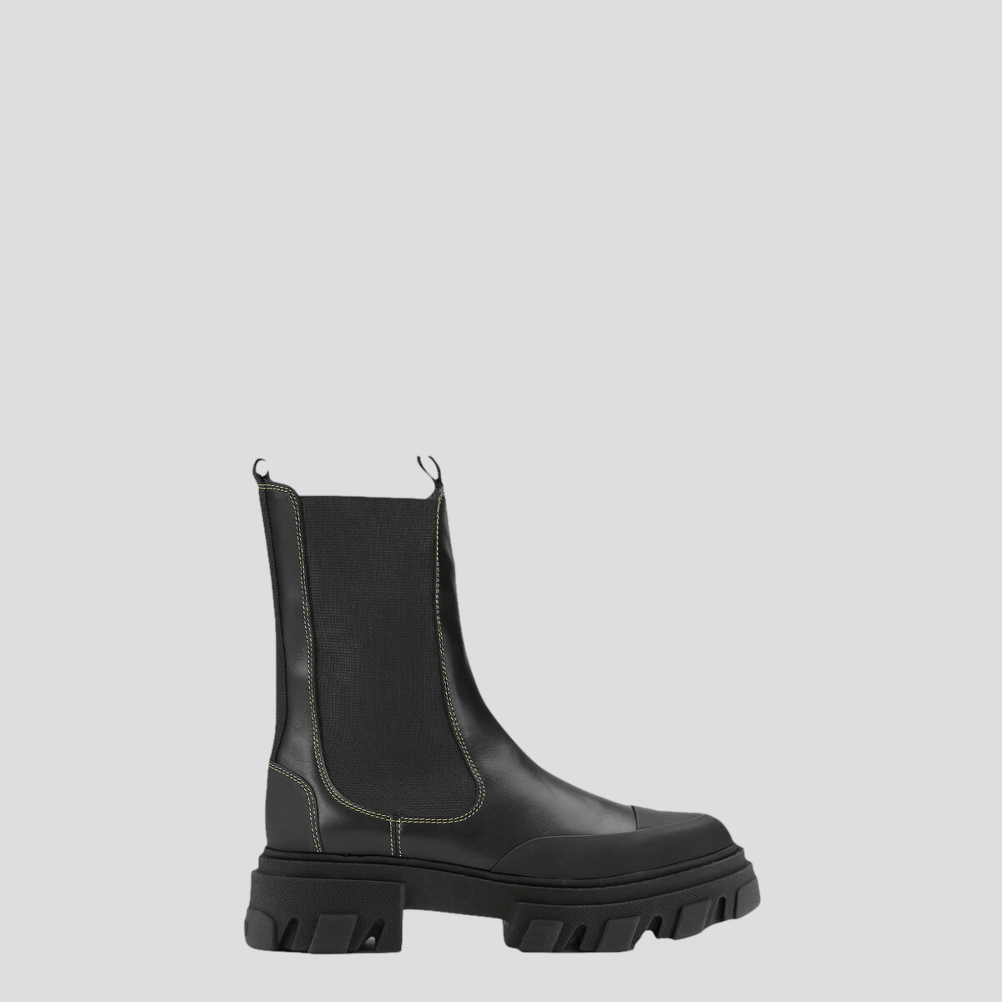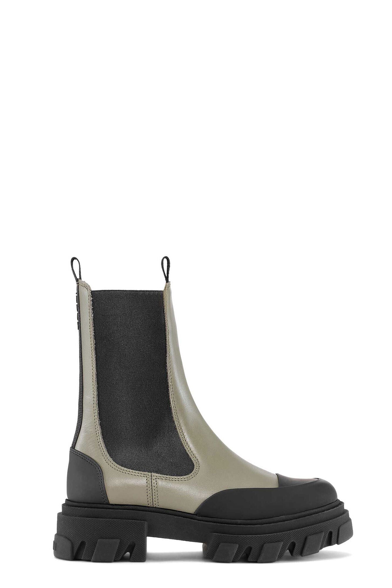 These are classic ankle boots in leather, featuring chelsea-style elastic panels, toe cap details, pull tabs, and chunky cleated soles. They are a perfect addition to any outfit, and will keep your feet comfortable all day long.