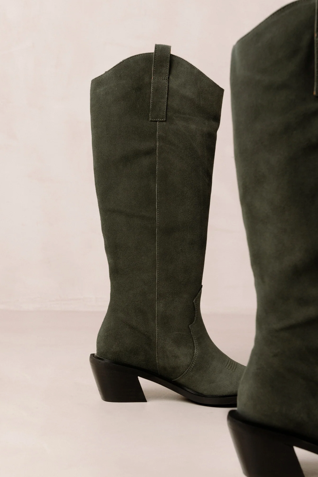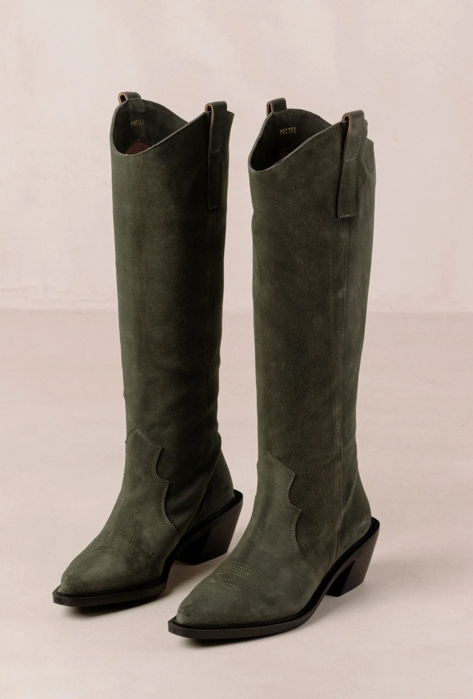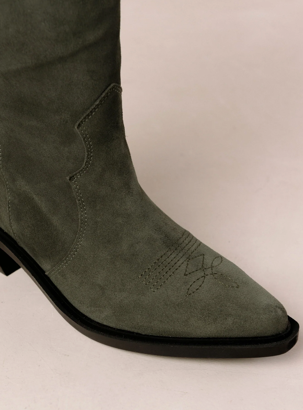 Giddy up, girls! Cowboy boots are back and they are not going anywhere. Inspired by the iconic Western style, this pair is crafted from green suede with subtle embroidery along the pointed toe and classic pull tabs. Swap out your sandals for a pair of these to ride fall season’s biggest trend like a pro.