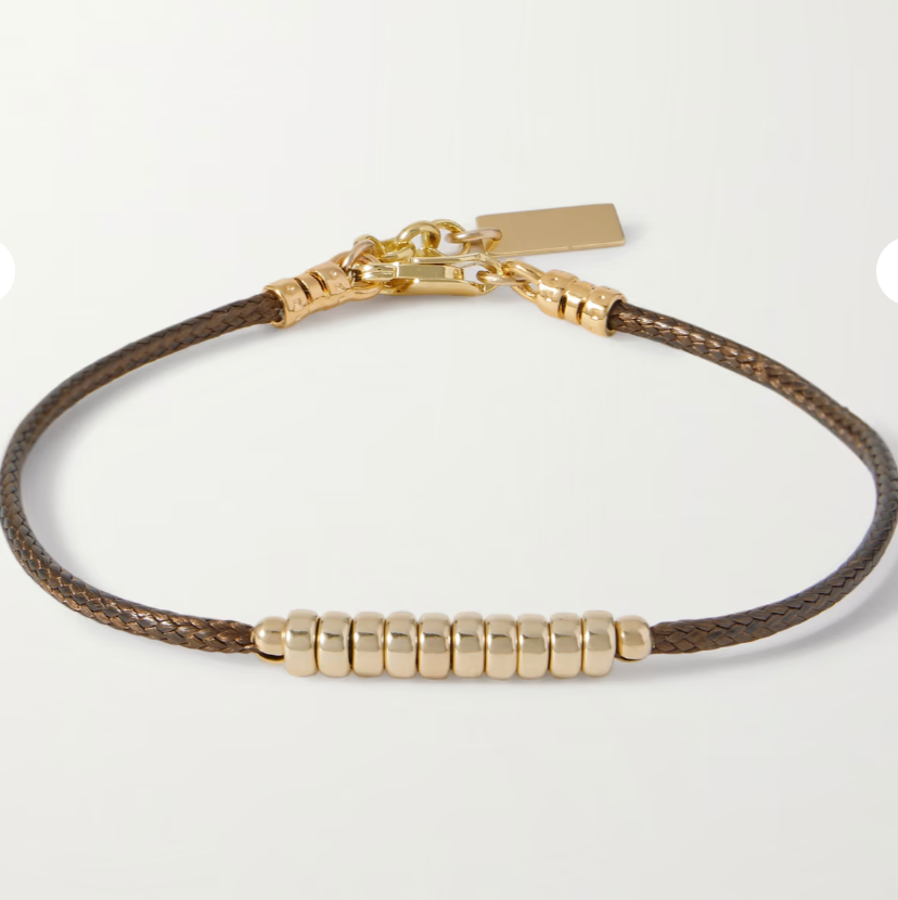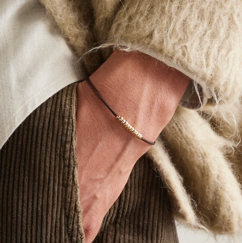 Miami-based jewellery brand éliou has transformed from a simple side project to a favourite of stars like Harry Styles. Handcrafted in the US, this 'Alik' cord bracelet is threaded with gold-filled beads and has a small branded charm that hangs off the lobster fastening.