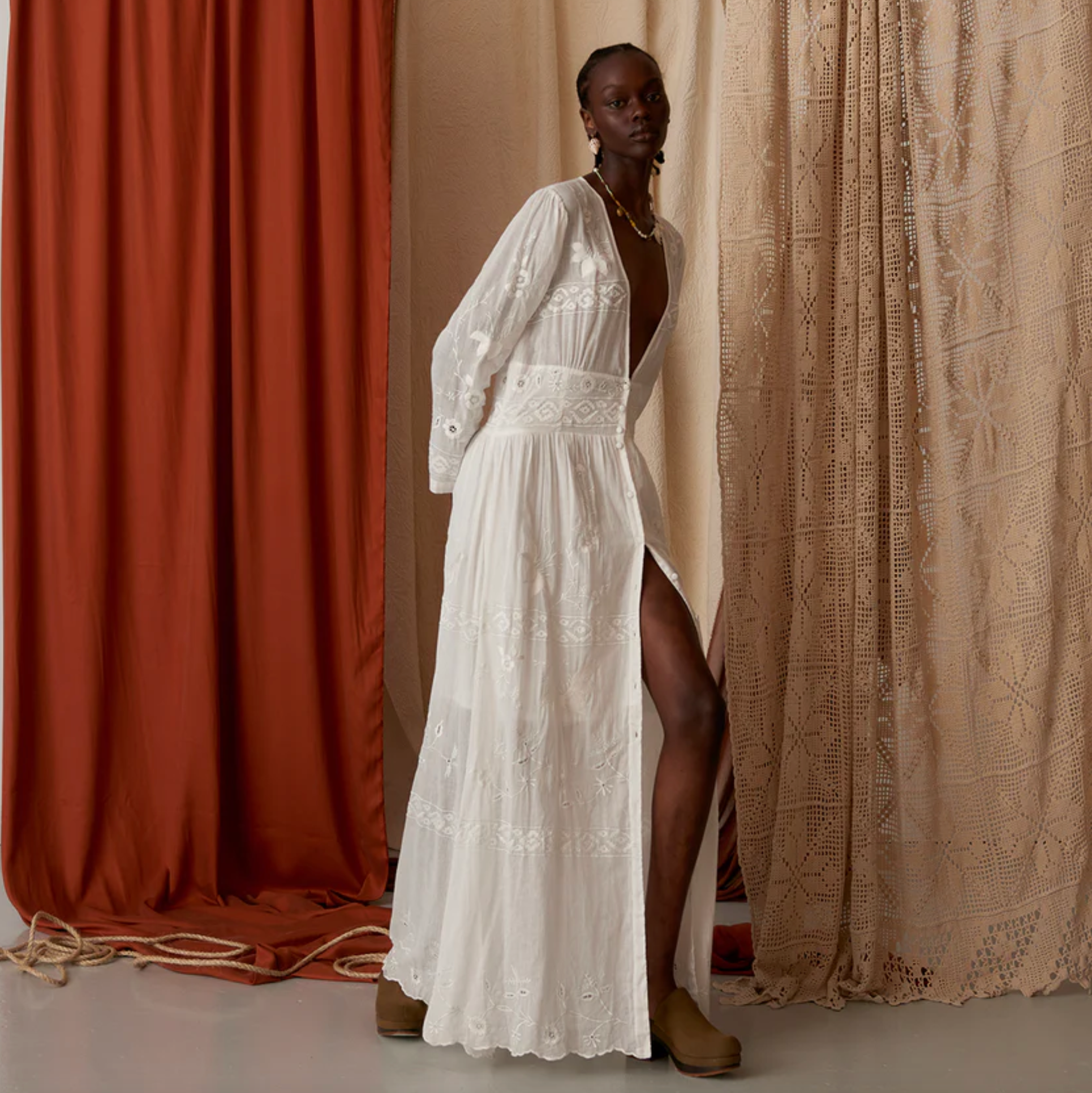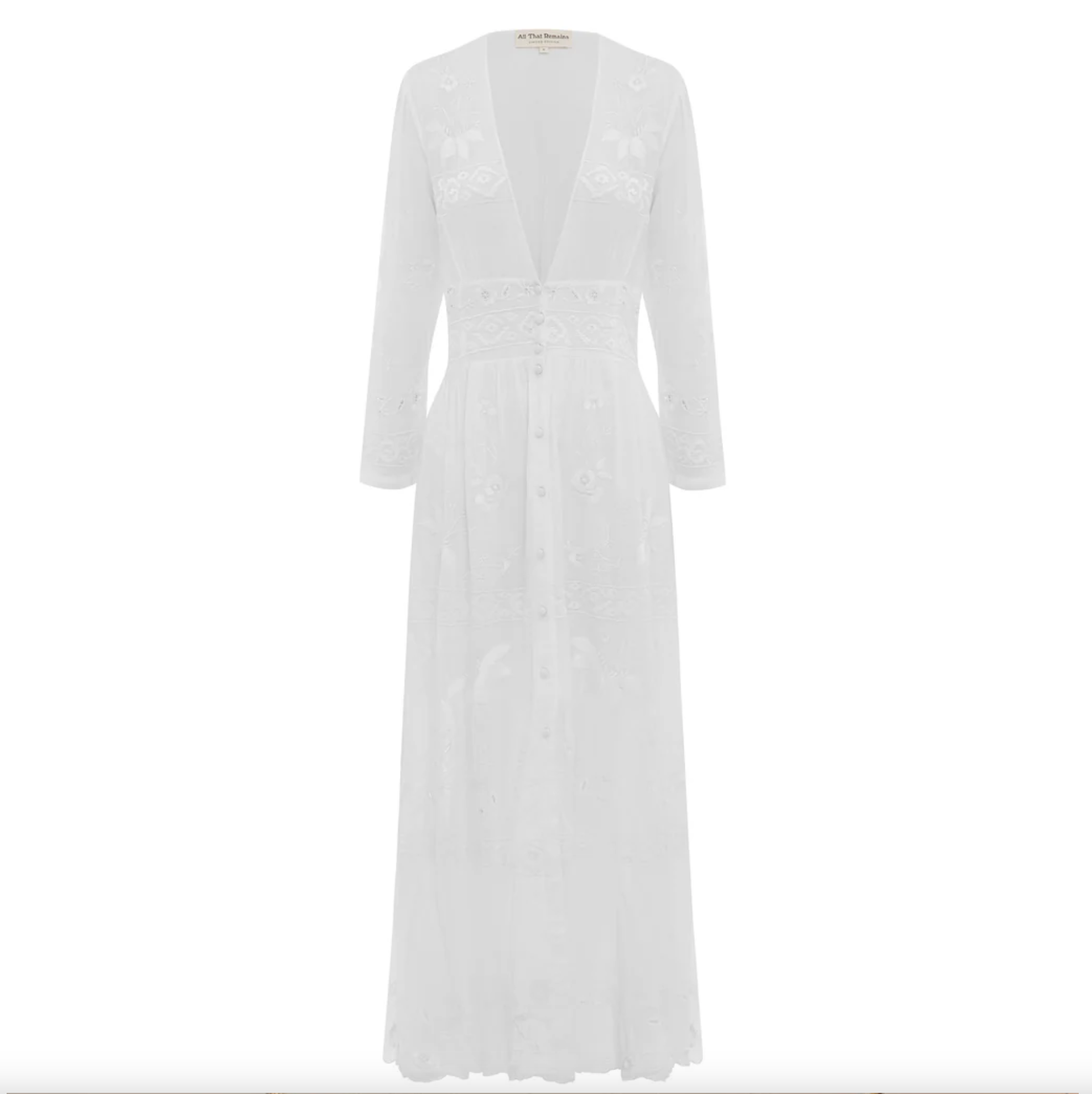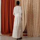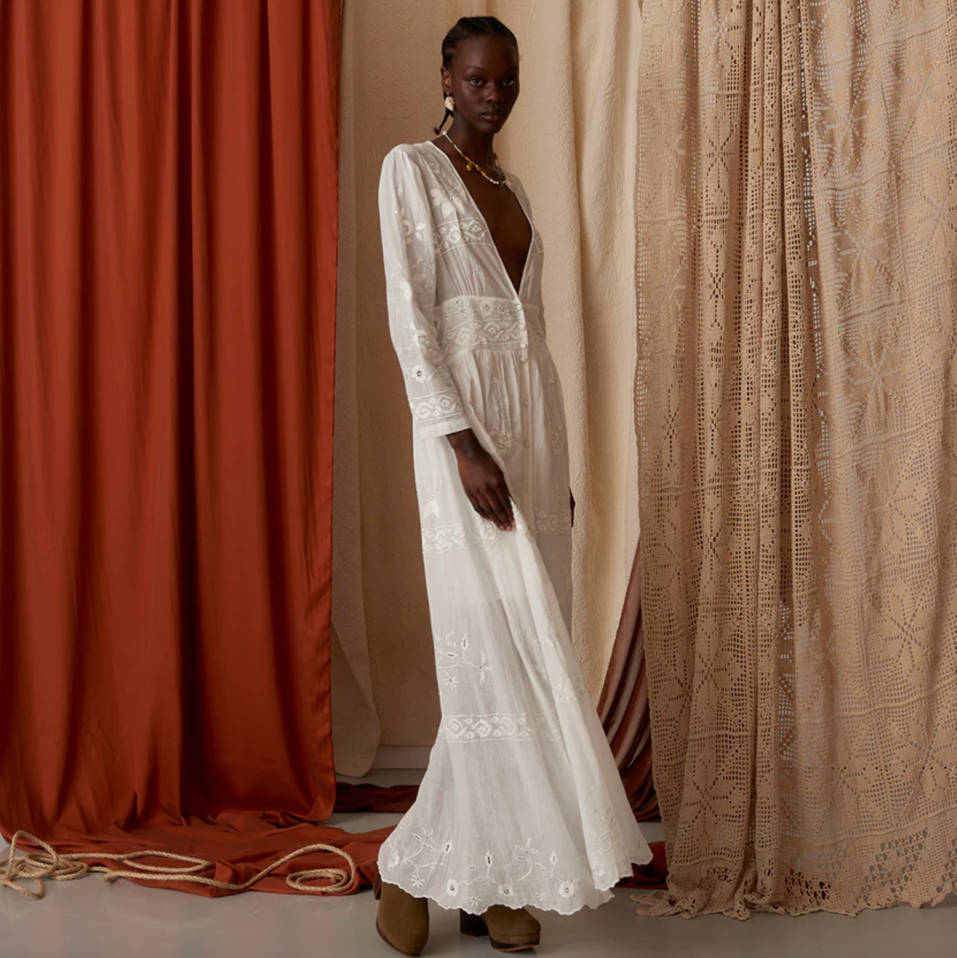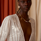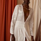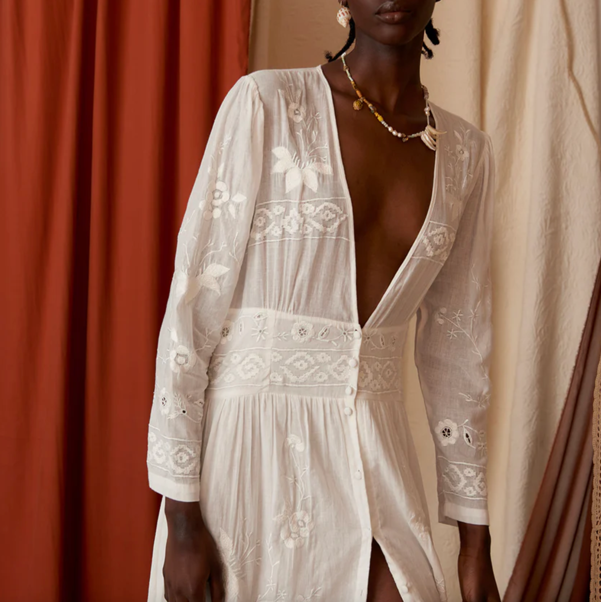 - Long sleeve with intricate multi-coloured embroidered motifs, each hand-cut to create a completely unique lace.