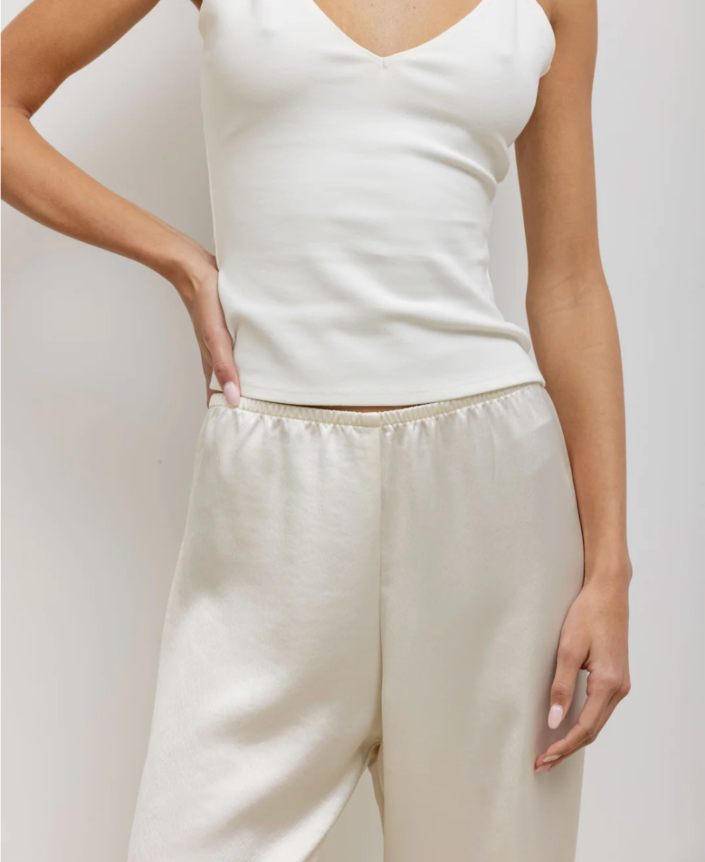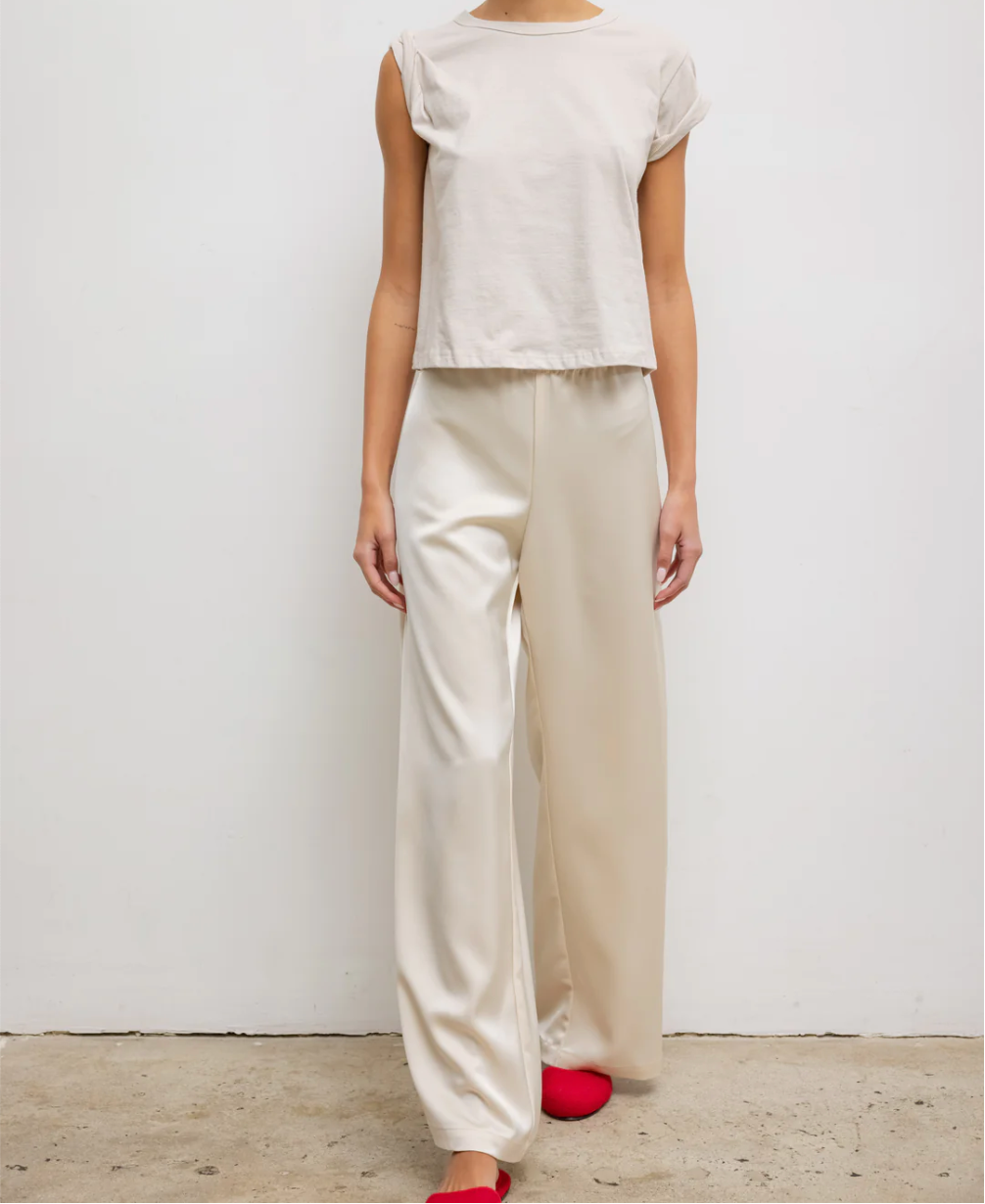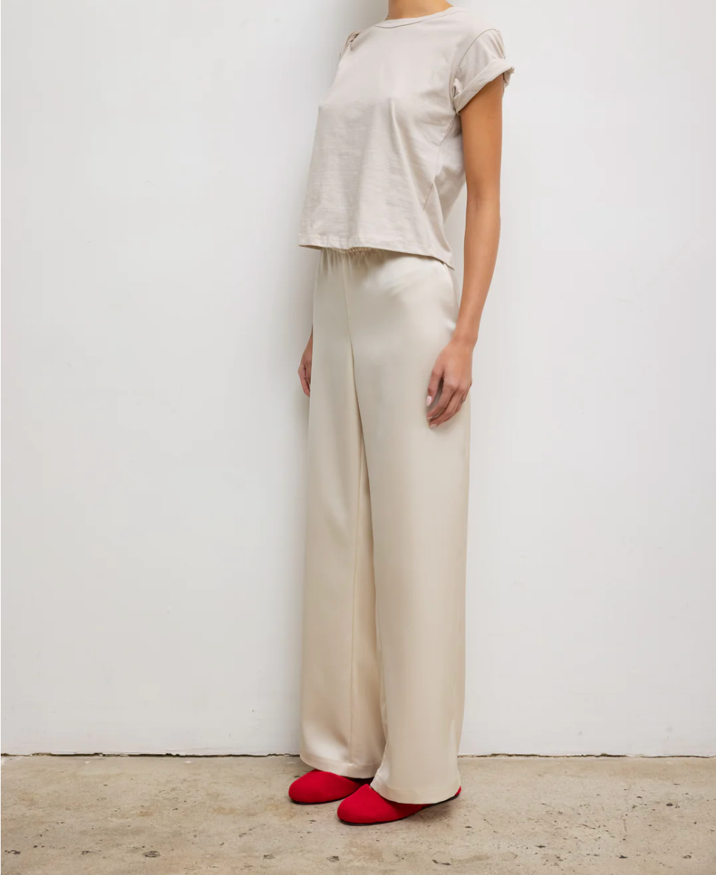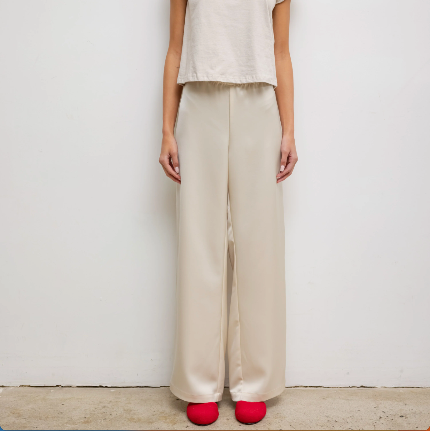 The Barb Wide Leg Pant from Japanese brand Crafted is our bestselling everyday silhouette. Made from a silky smooth Japanese satin, it features a comfortable, mid-rise elastic waistband and a relaxed leg. This pant is perfect for everyday wear, whether you're dressing up or down. Choose from a variety of colors to find the perfect match for your wardrobe.