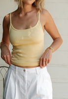 A year-round essential, effortlessly versatile for layering or wearing solo. Designed with a scoop neck, spaghetti straps, and a fine rib texture that provides the perfect amount of hold—no bra required.