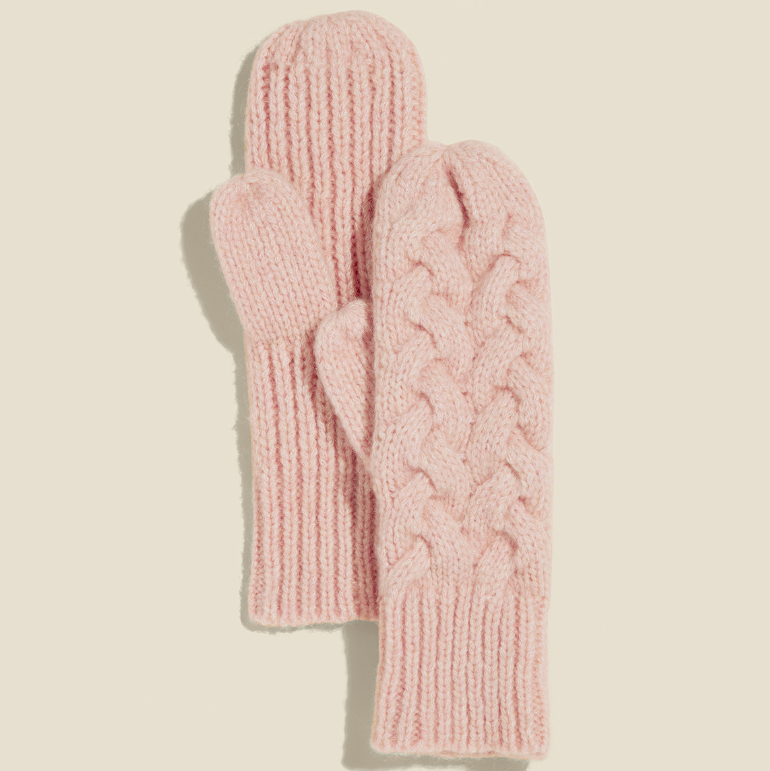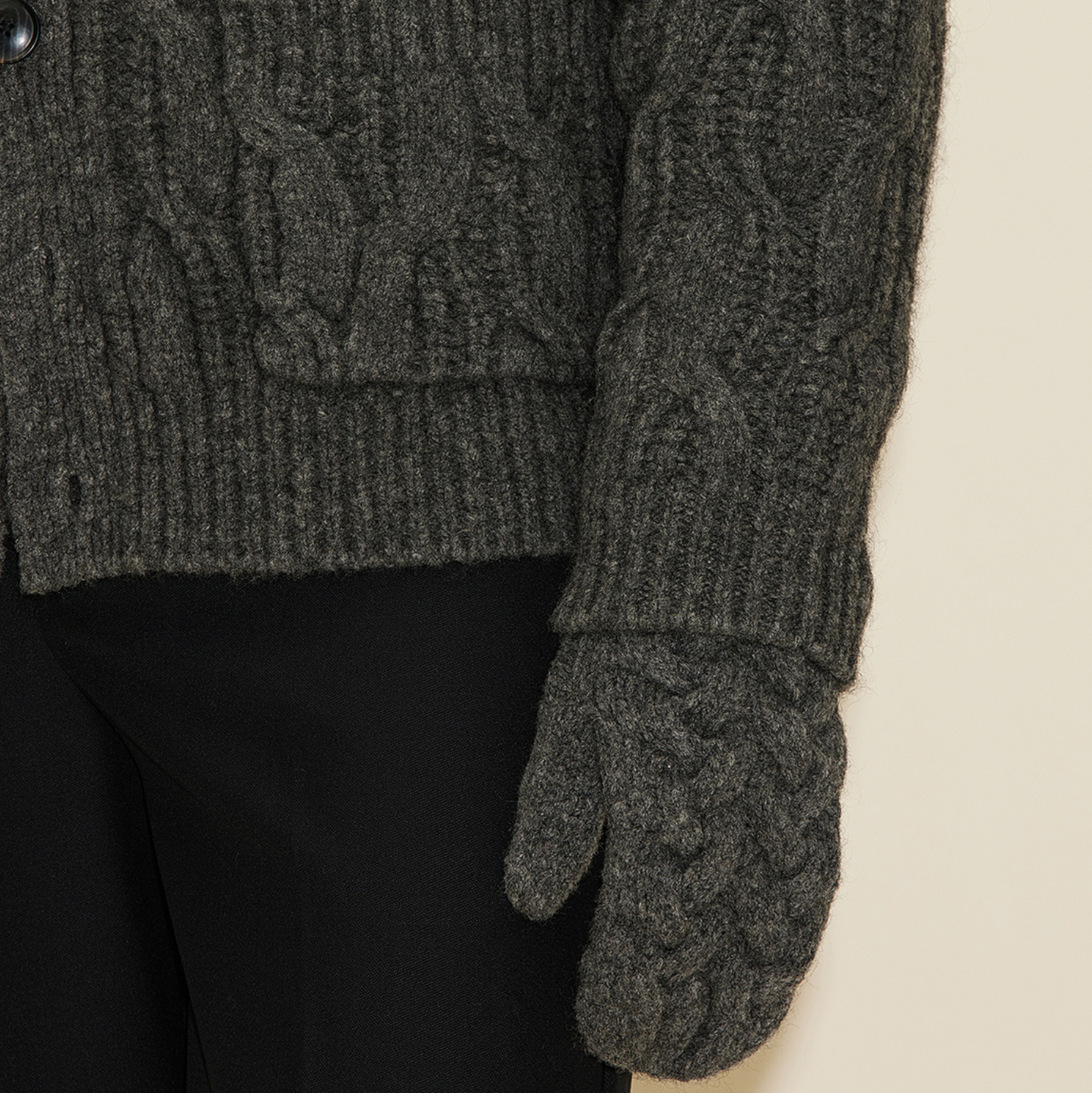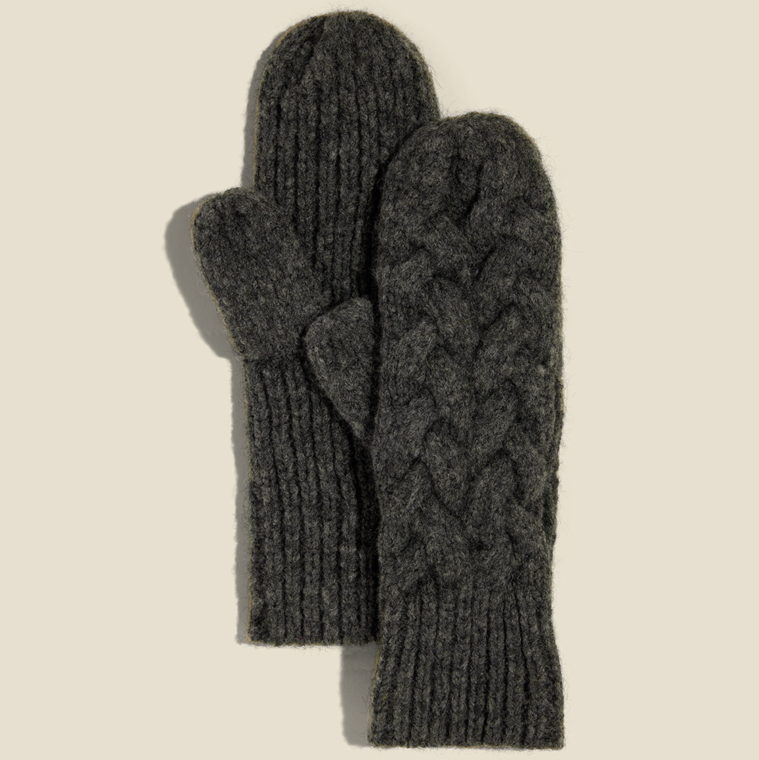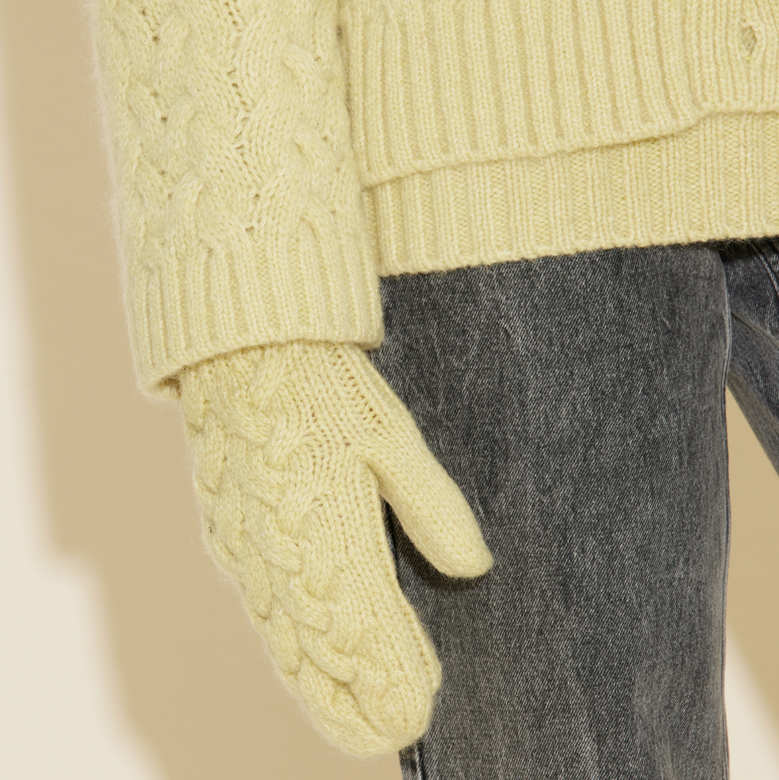 Crafted from a soft wool mix, the Chia Cable Mittens feature a chunky cable-knit design and a Holzweiler label on the wrist.