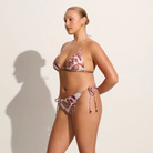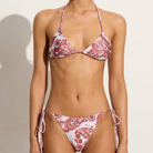A classic triangle top with a twist, the Delle Bikini Top in Alessia Paisley is a halter neck top with sliding cups and delicately twisted ties that are adorned with beads at the ends. Crafted with a high sheen finish for a statement effect and fully lined for extra coverage. Pair it with the Picone Bikini Bottom for a matching set.