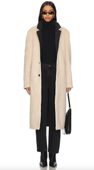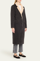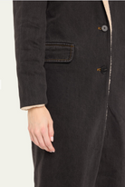 Heavyweight reversible denim fabric with faux fur lining and notched lapel collar