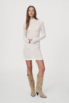 Introducing the Galo Flower Lace Mini Dress, the most anticipated new addition to your wardrobe. This long-sleeved lace mini dress features a flattering body-fitting design and a timeless silhouette. Perfect for styling layered or taking centre stage on its own.