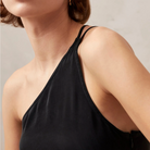 No matter the season, give your shoulder some air time. The Gilda dress is cut from a swooshy black fabric to a stunning one-strap silhouette. It’s cinched at the waist by an optional sash, while it fits loosey everywhere else. Save it for a special occasion or tone it down with something on top - you do you, girl!