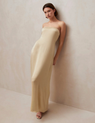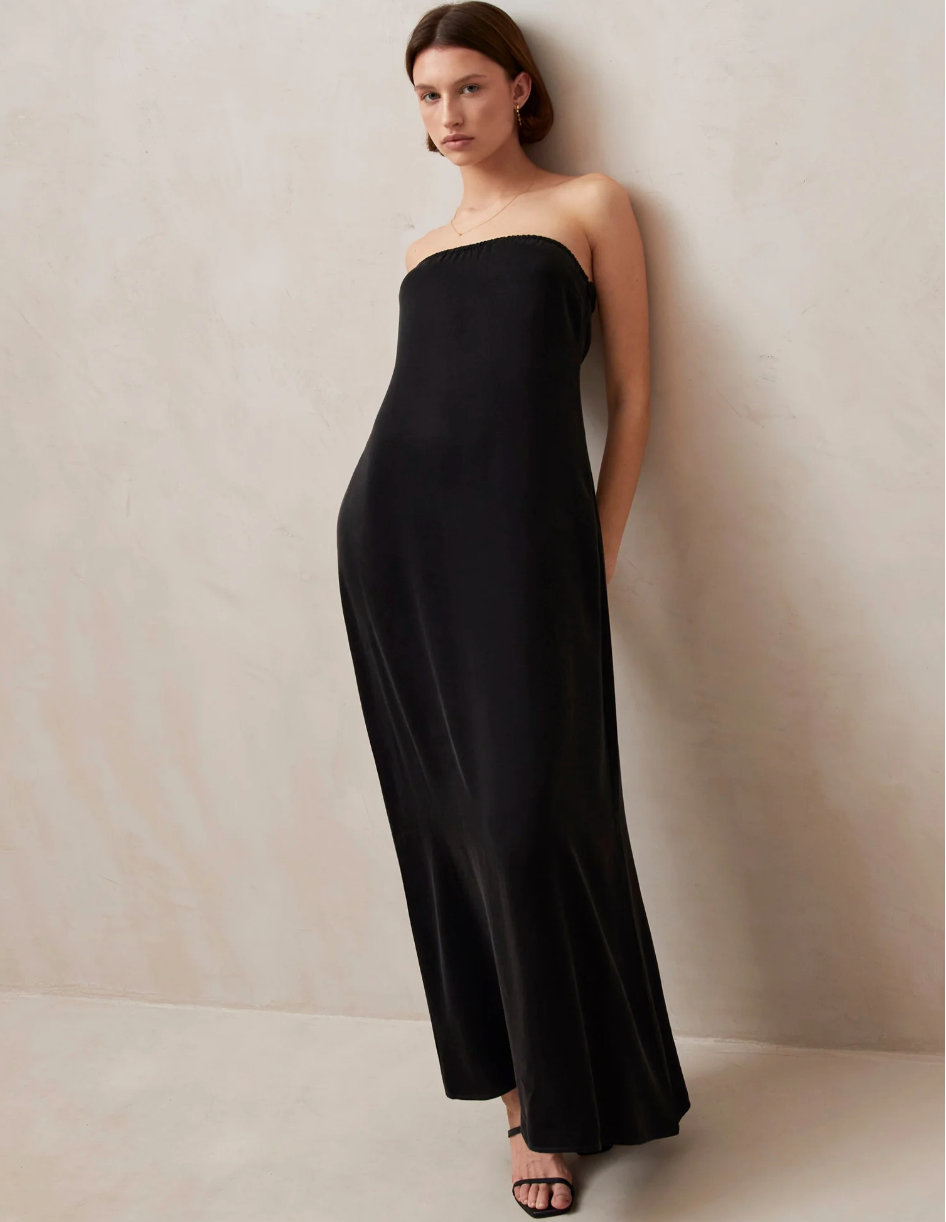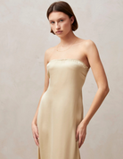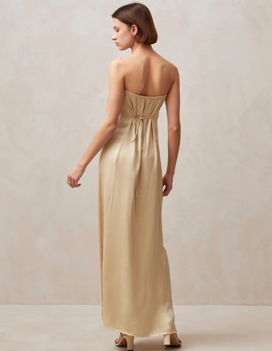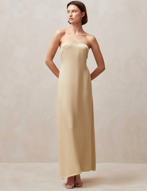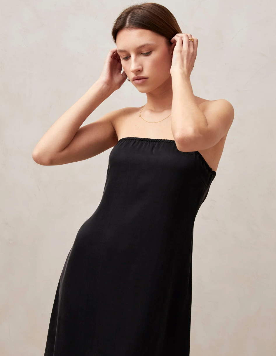 Manifesting the marvel of minimalism, the Ilia dress feels pared-back yet freshly fashion-forward. It features a strapless silhouette cut from drapey cupro and we’ve added a back drawstring defining the waistline. The bodice is roomy, relaxed, and - best of all - elasticated, so you can brag about how comfortable it feels at your next event.
