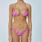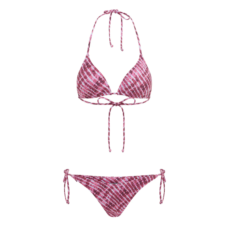 - This string-style bikini offers a minimal amount of coverage with super flattering seamless construction. Featured in our latest tie-dye print, Juicy, a captivating symphony of purple and pink hues.