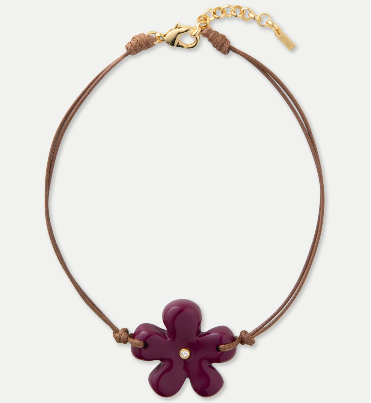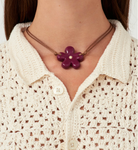 Our Lory is the perfect versatile statement necklace for transitioning seasons. Its focus is a light-weight, resin pendant which hangs from an adjustable brown waxed cord. The flower motif is a reproduction of an originally hand molded pendant that was designed and made in our Miami studio.