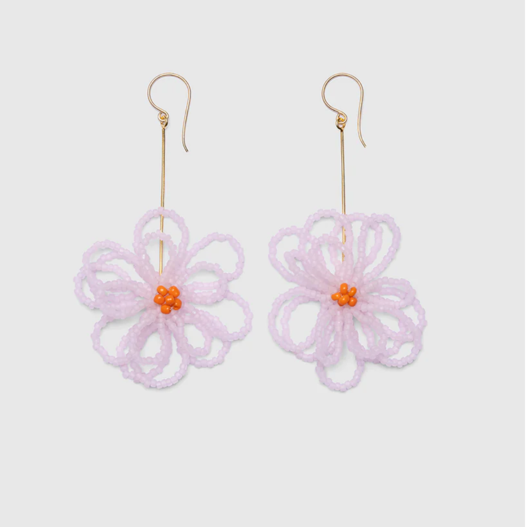 A delicately hand beaded flower, in drop-style earring. Made in Bali by our Artisan partners. The perfect accessory to dress up any outfit, or gift to a loved one.