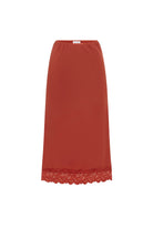 The Marina Silk Midi Skirt is an elegant take on our best-selling Marina Mini. Crafted from a blend of silk crepe and nylon lace, this high-waisted, lined, bias-cut skirt heros a delicate lace hem. Destined to to become a key player in your wardrobe, this cherry red must-have skirt will take your look from day to night.