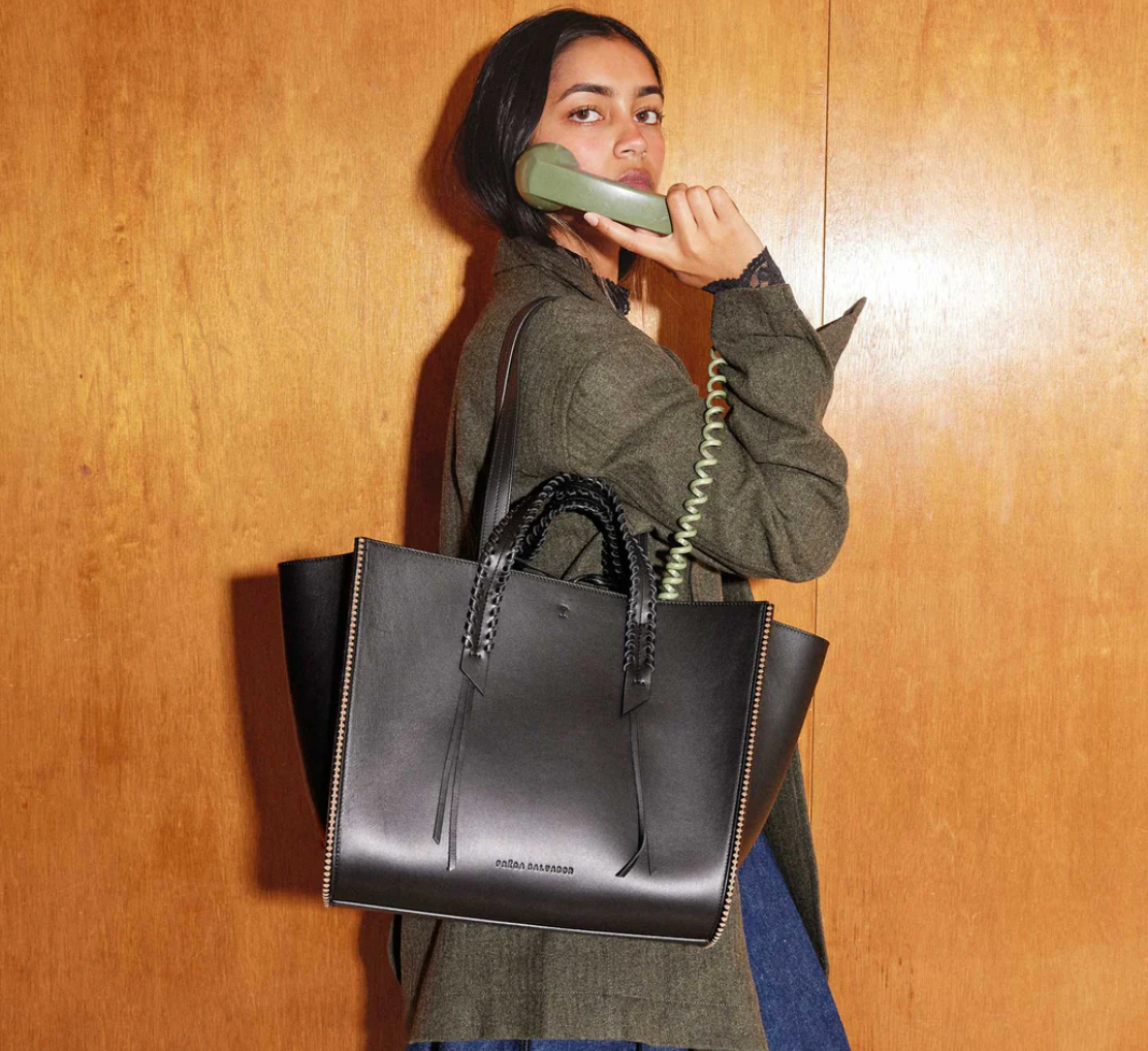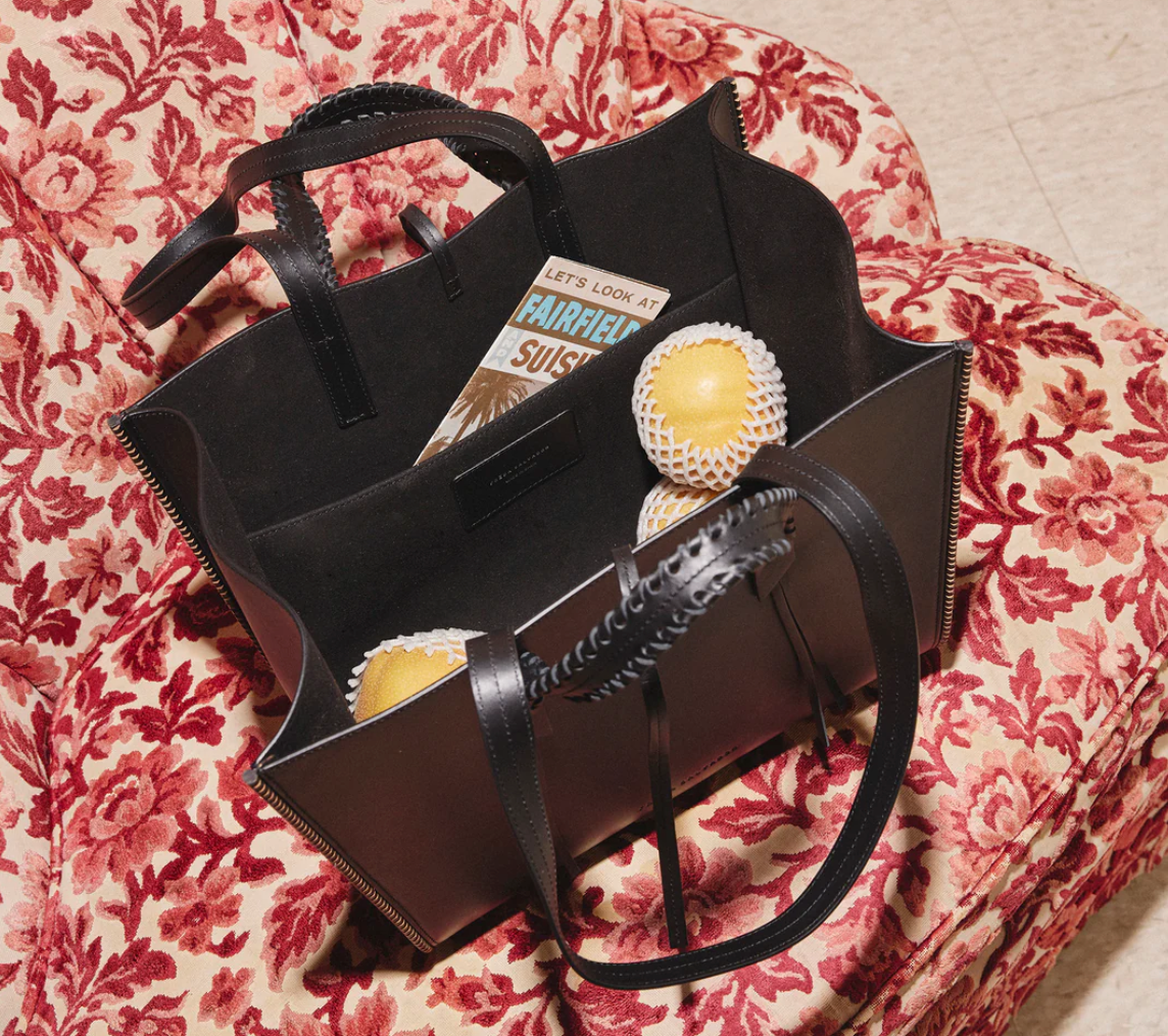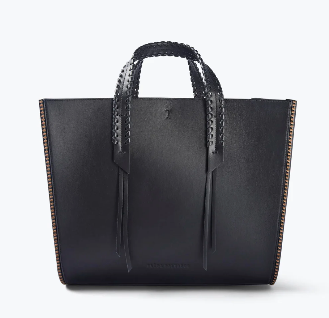 The coolest way to hold your life. Handcrafted with smooth black calf, the MIKO is your everyday tote finished with our iconic notched welt, whipstitch top handle, and shoulder straps for choice of carry. The roomy, microsuede interior expands with a functional gusset and has a small slip pocket to store your essentials when you’re on the go.