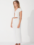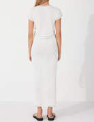 The Milk Contrast Knit Skirt by Zulu & Zephyr is a soft, lightweight, throw-on essential, featuring a thin elasticated waistband designed for a waisted fit, full length, and contrast trim detailing in a vibrant marine blue. Pair this with the coordinating Milk Contrast Knit Top or with the Sky Cotton Blend Knit Top.