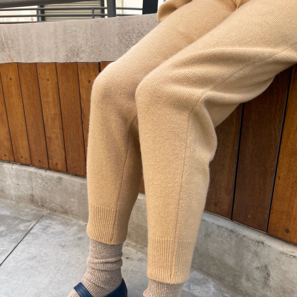 We wanted to upgrade the loungewear look into something that you can feel good about leaving the house in. These luxurious cashmere blend knit jogger pants have a flattering fit with tapered ankle length. Pairs with the Nanette Pullover making it the ultimate travel outfit.