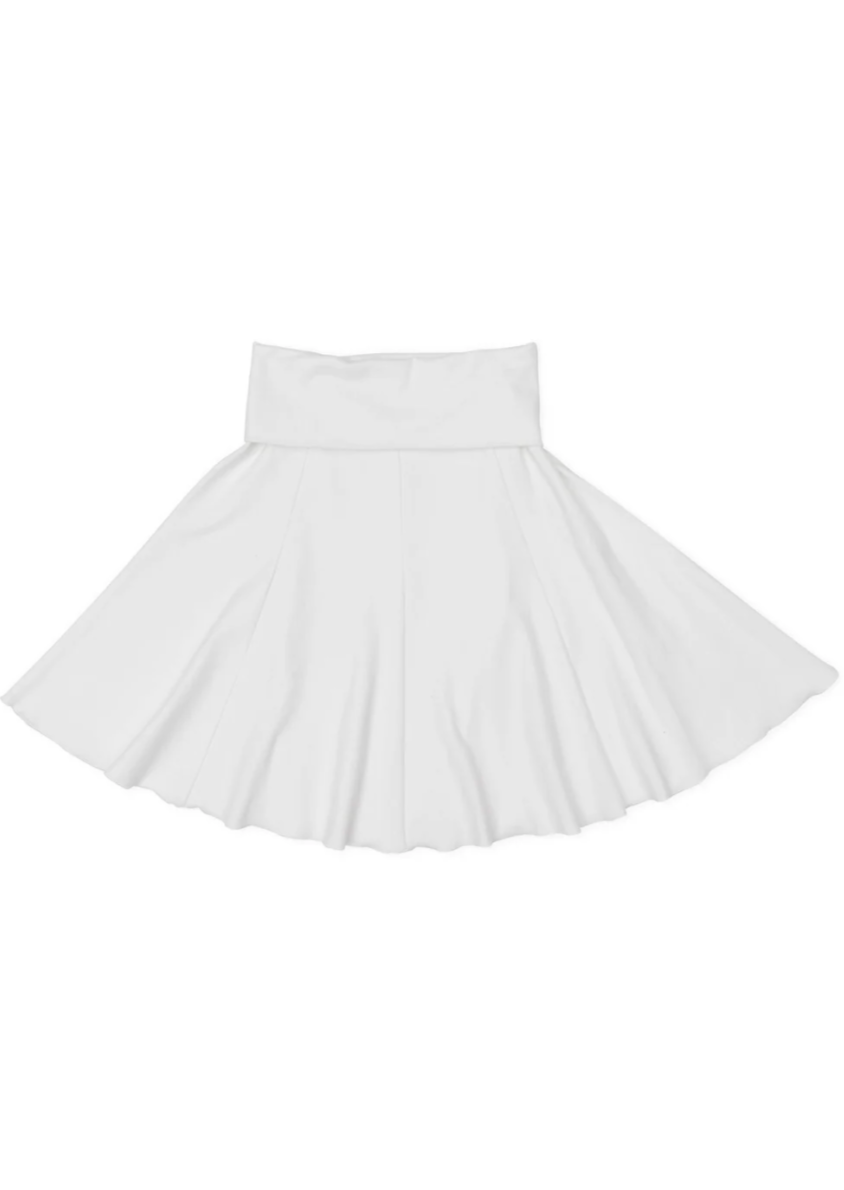 The Nara skirt is a medium weight, fit-and-flare knee length skirt with a foldover waist.