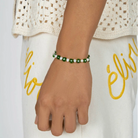 Our Nikola bracelet is a string of vibrant green glass beads and freshwater pearls, brought together by our heavily gold-plated and sturdy logo magnet clasp. Wear it alone or stacked alongside another one of your favorite éliou pieces. Offered in three sizes, there is a Nikola bracelet for every wrist.