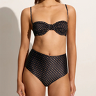 Made to support and flatter, the Reyes Bikini Bottoms in Ludovica Polka Dot is designed to be your sunkissed staple. These high-waisted bikini briefs are mindfully made from certified recycled nylon and offer full rear coverage and lining throughout. Style yours with the matching Stefania Bikini Top for a matching set.
