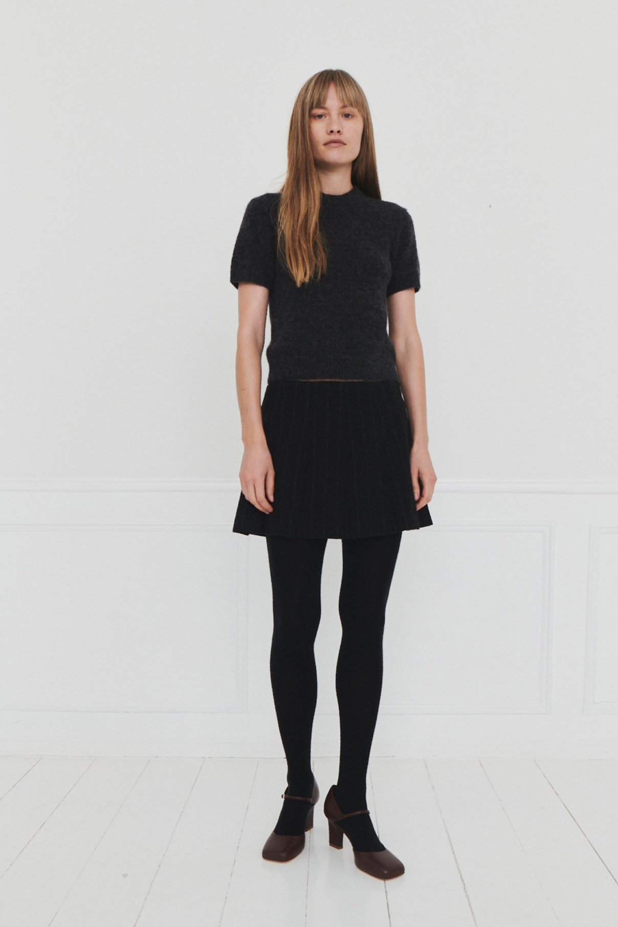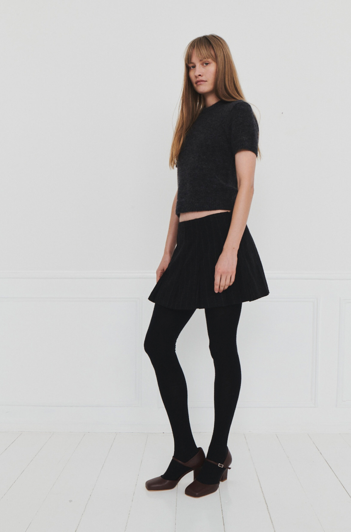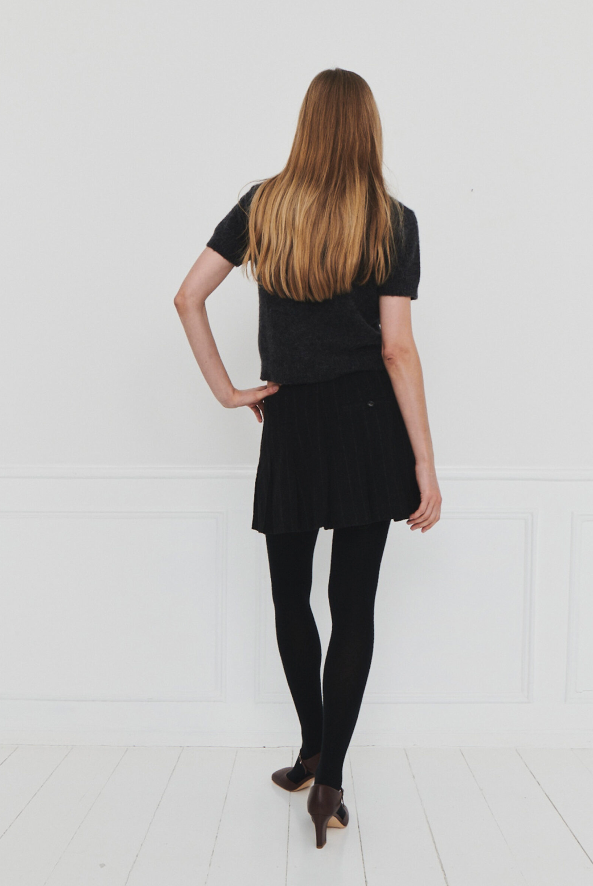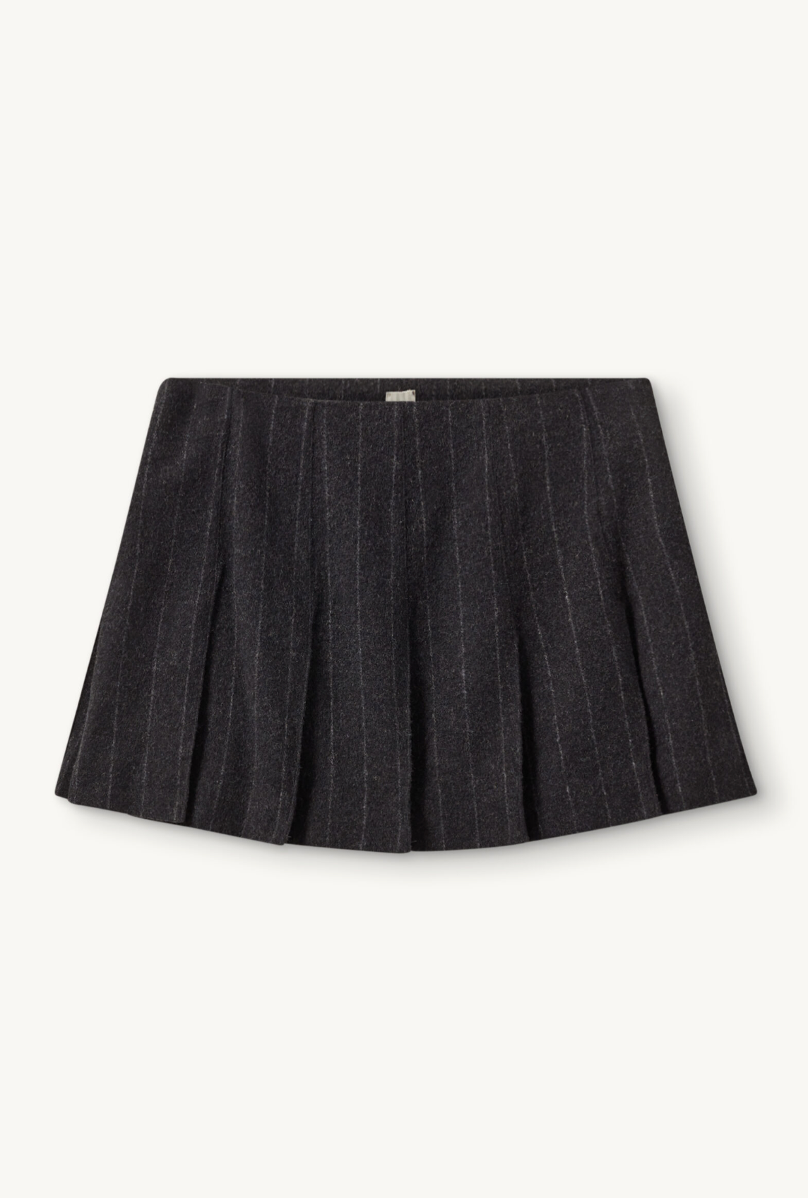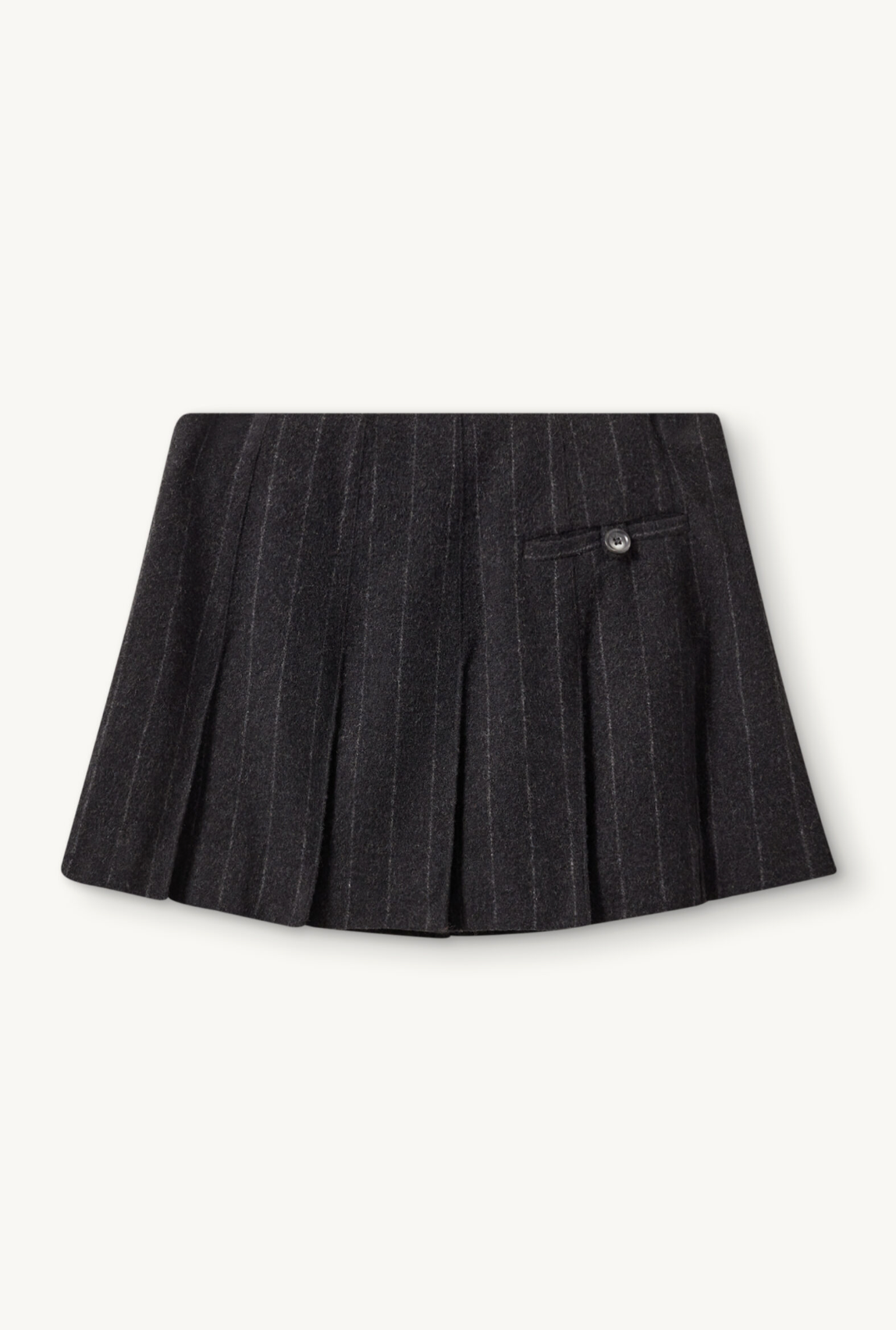The Richard Tennis Skirt is a short, stylish skirt made from 60% wool. Its chic design combines classic aesthetics with a touch of sporty elegance, making it a versatile piece for both casual and more polished looks.