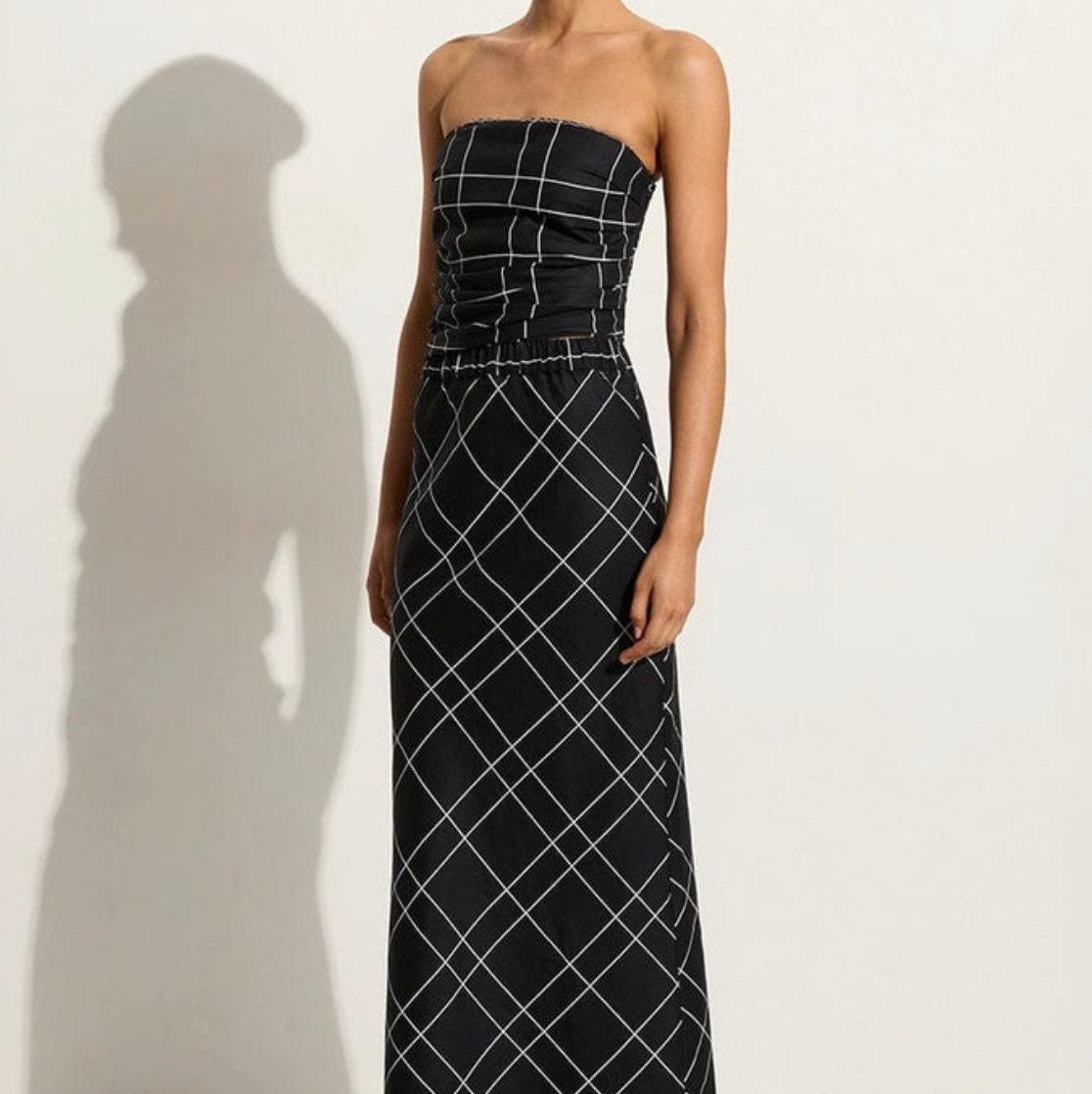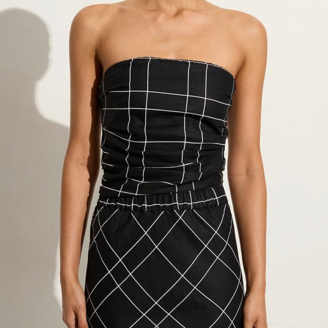 The Setubal Top in Letizia Check Black is your sunshine ready essential. Designed with a strapless neckline, side pleats for a gathered effect, asymmetric hem and a shirred back for extra comfort during wear. Crafted from European Flax® certified linen and hand-printed with a retro check print, pair it with the Dalicenca Skirt for a matching set.