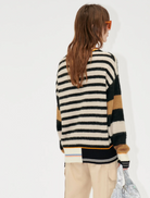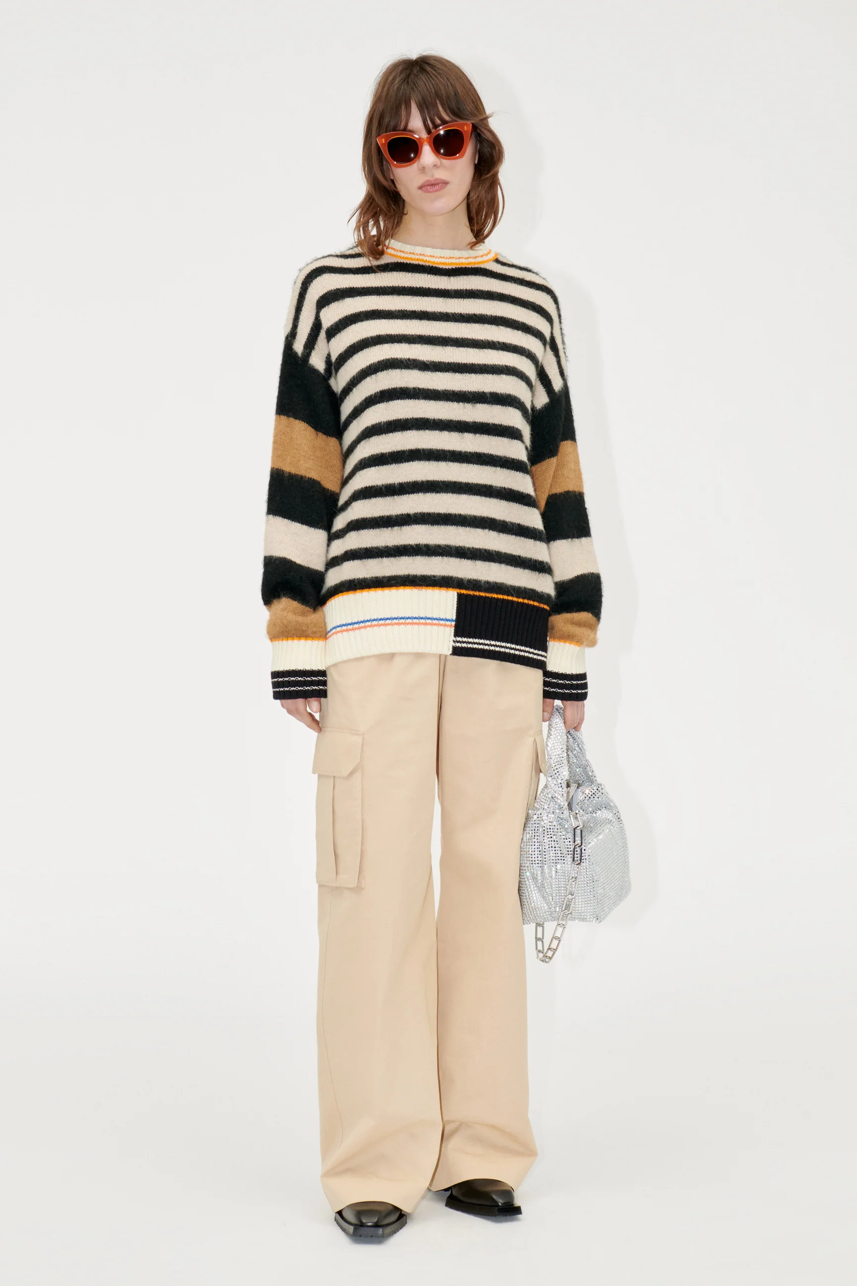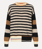 KNIT SWEATER WITH THICK RIBBED HEM AND CUFFS, SLOUCHY LONG SLEEVES AND PATCHWORK STRIPED PATTERNS.