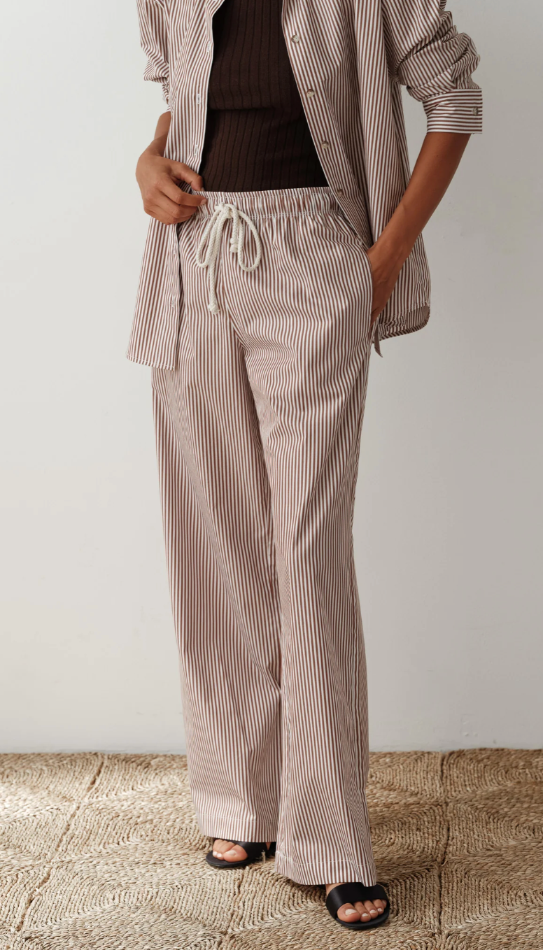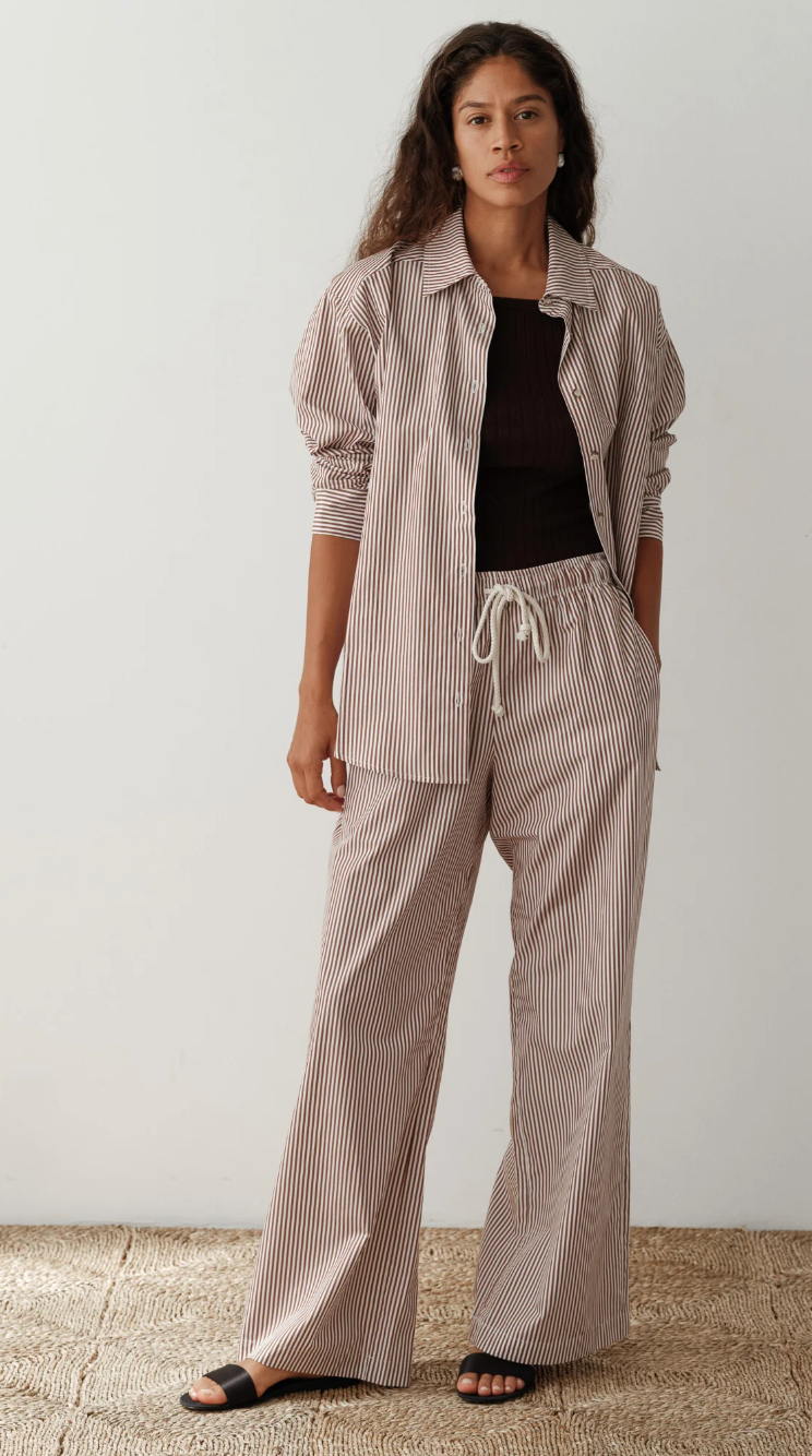 The Pop Pant is crafted from 100% cotton poplin. A year round closet staple, featuring a wide leg fit, customizable rise and drawcord waist.