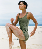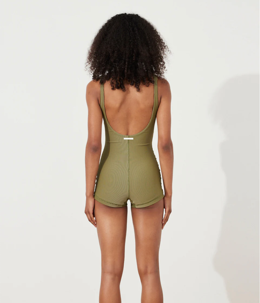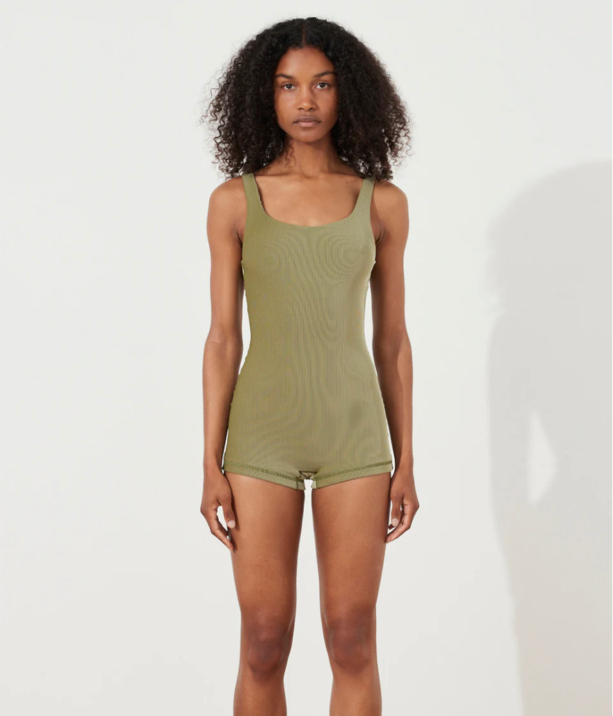 This is constructed from 66% Global Recycled Standard (GRS) certified recycled Nylon/ 11% Polyester/23% Elastane, and lined in 78% REPREVE® Nylon/22% Elastane.