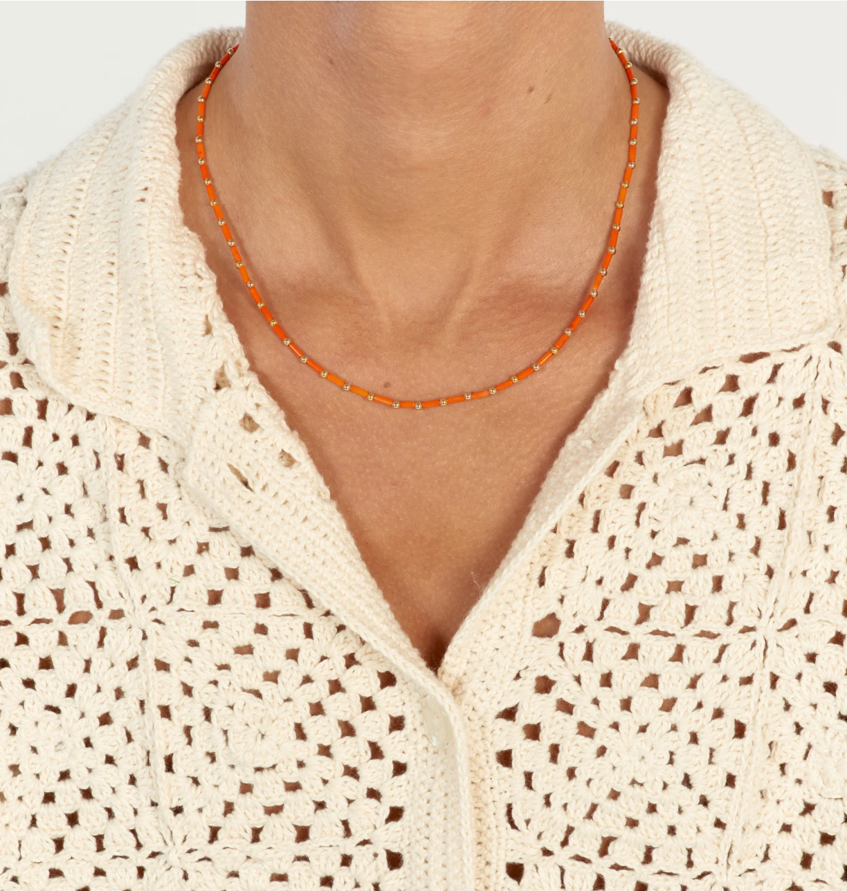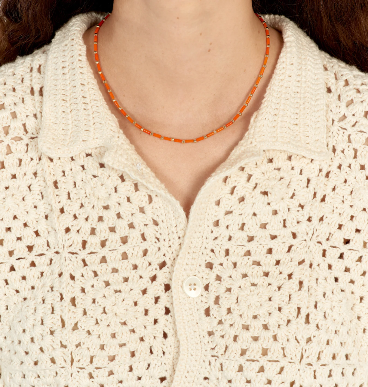 The perfect layering piece all year long; our Tayo Necklace is designed to be worn daily. A classic éliou design, this bracelet is composed of orange bamboo coral and gold-filled beads. Wear it alone or alongside your other éliou pieces.
