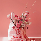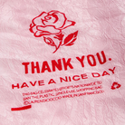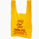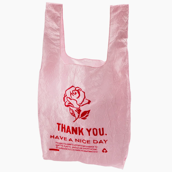 The THANK YOU THANK YOU TOTE is machine-embroidered on fabric made from 100% recycled materials. The totes are sturdy and washable, intended for daily use.