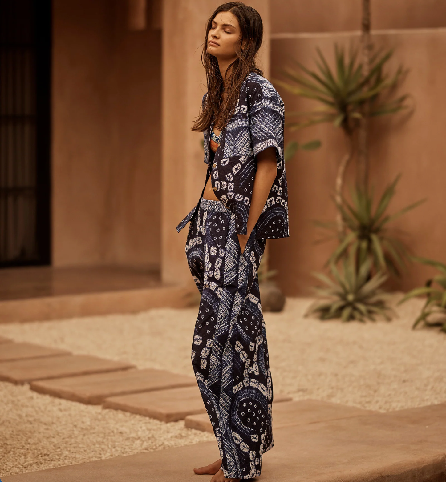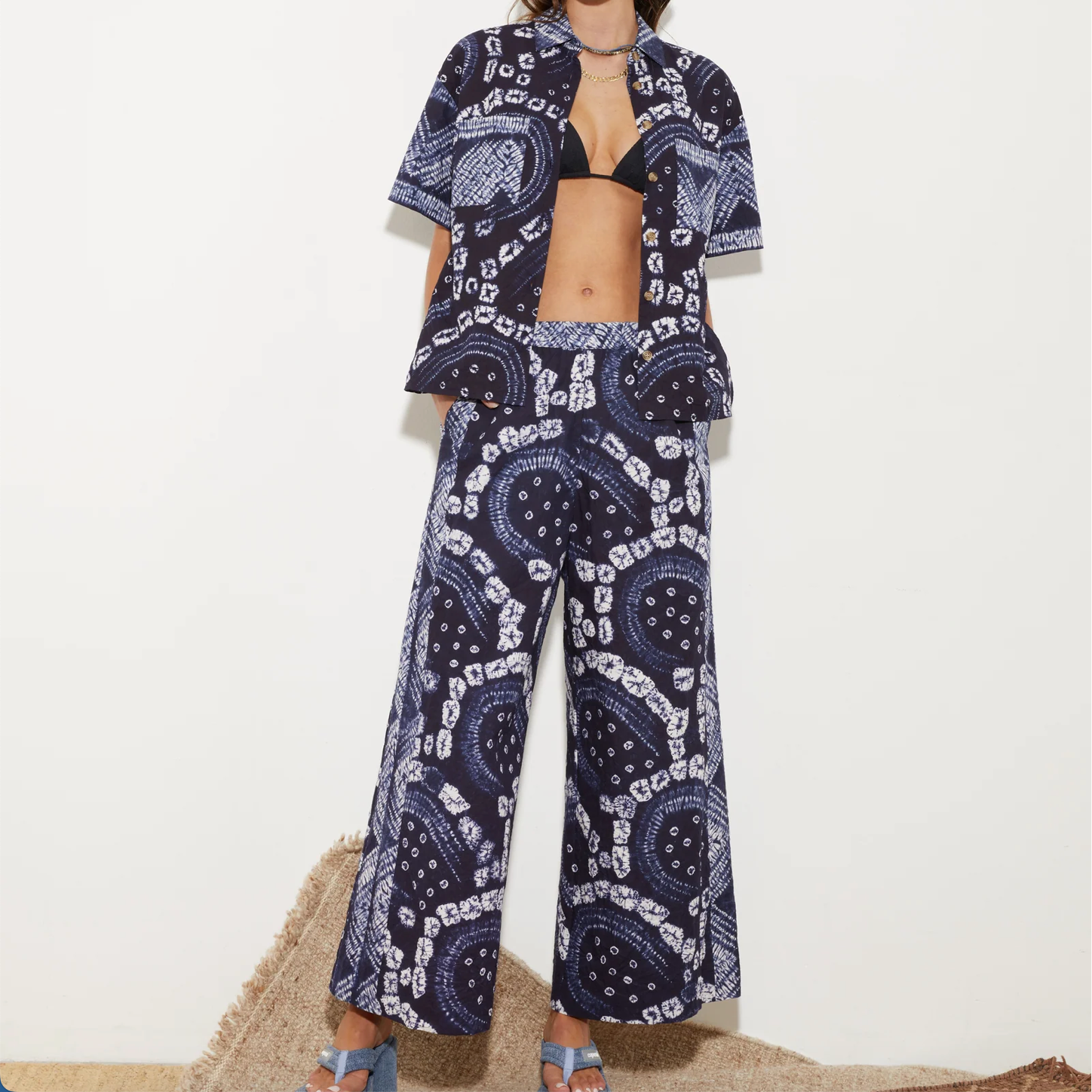Vea’s inky allure sees cruisy poplin cuts dotted with Indian shibori for an inspired take on nautical non-chalance.