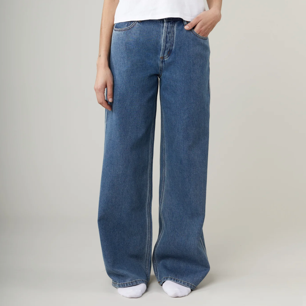 The Walker is a mid rise, wide leg, relaxed silhouette with a full 32" inseam. It is our baggiest fit but is designed to still flatter your butt. It features a traditional button fly and our signature 'SH' embroidery.