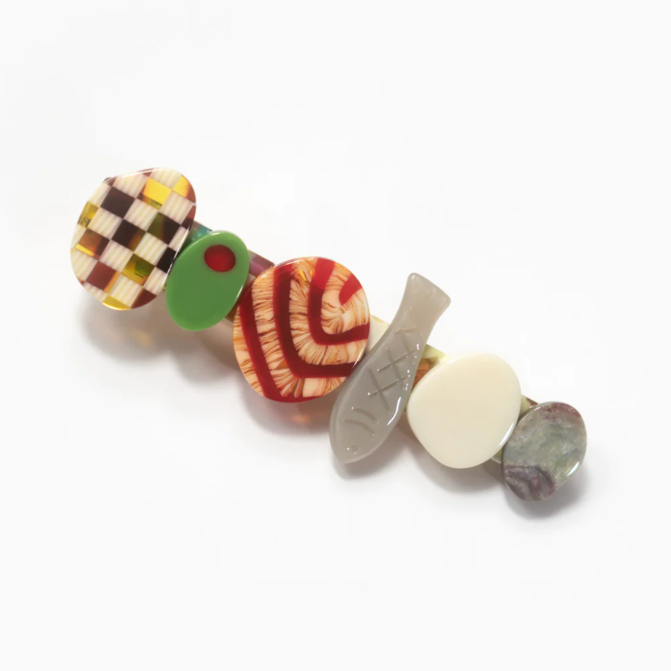 *Please note that due to the nature of the material, each hair accessory will have differences in color and pattern. Each hair accessory is made from individually cut pieces of cellulose acetate. Each one is unique!